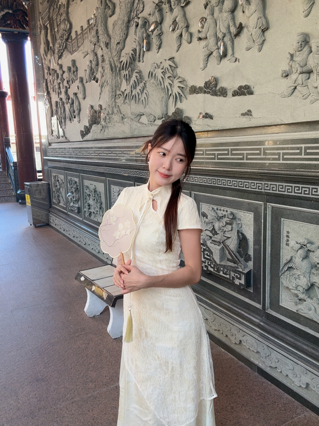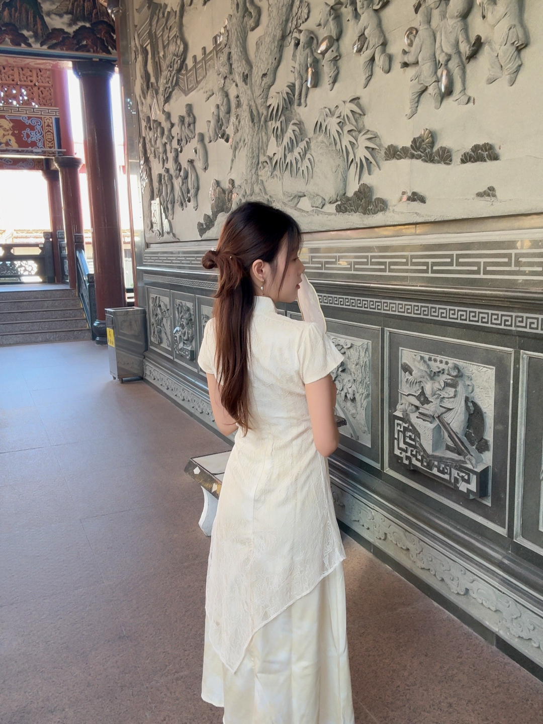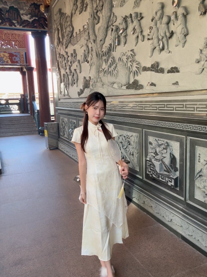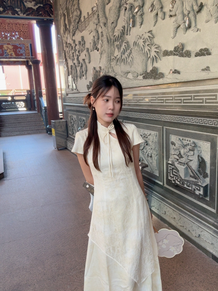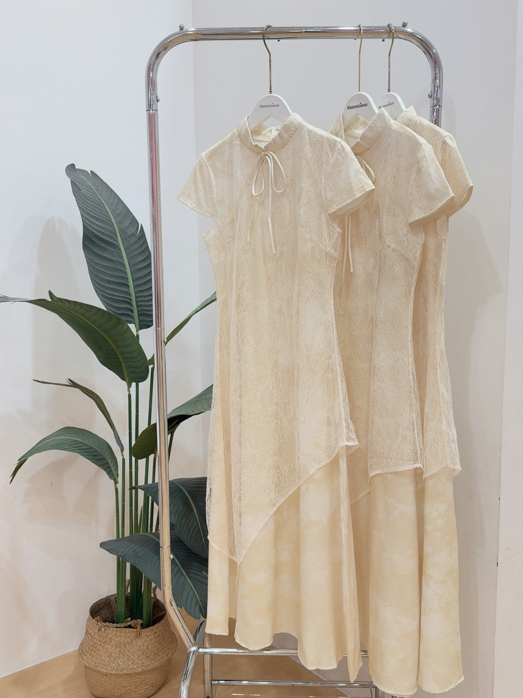 Code: R2880 立领蝴蝶结蕾丝旗袍连身长裙