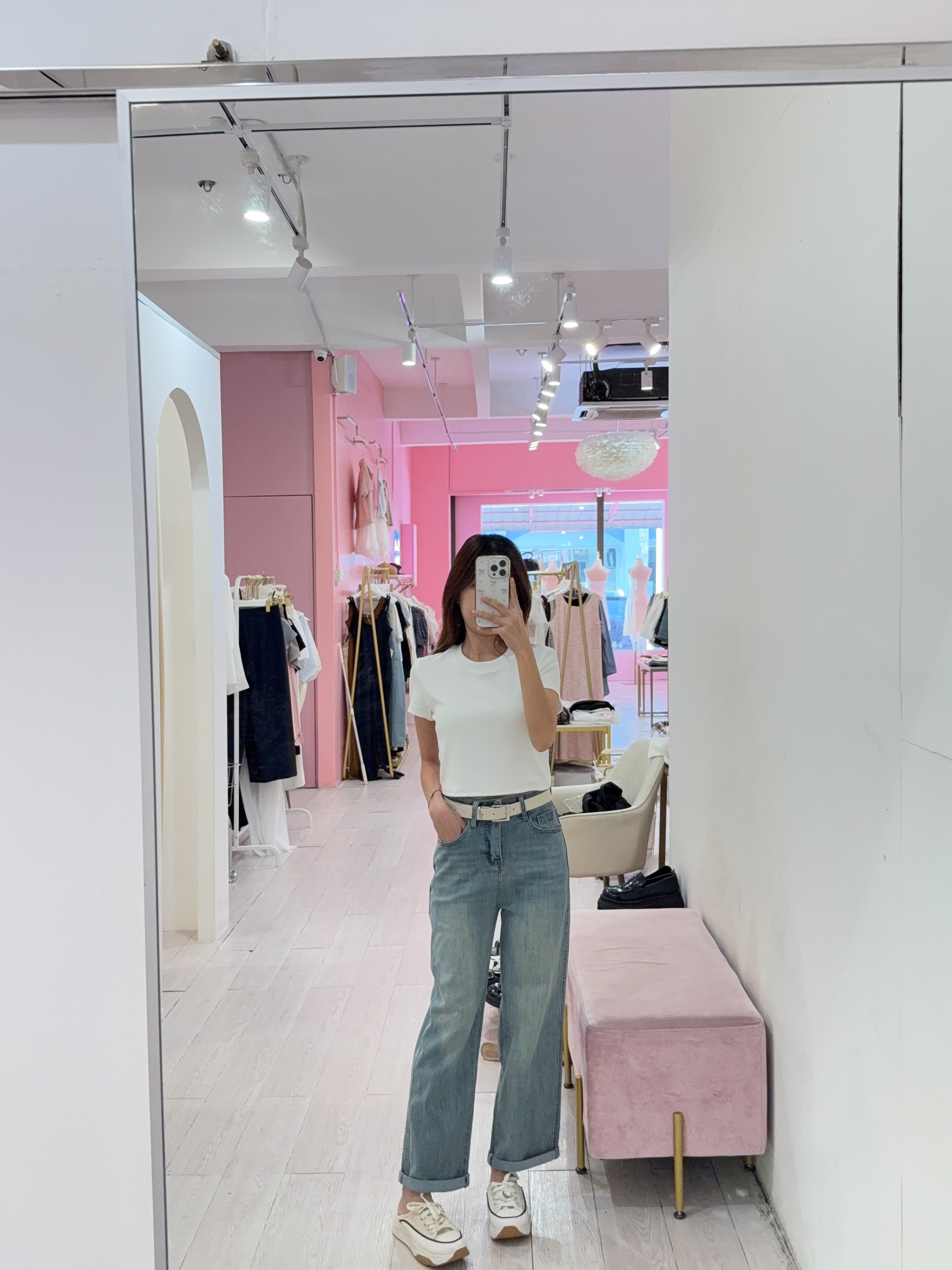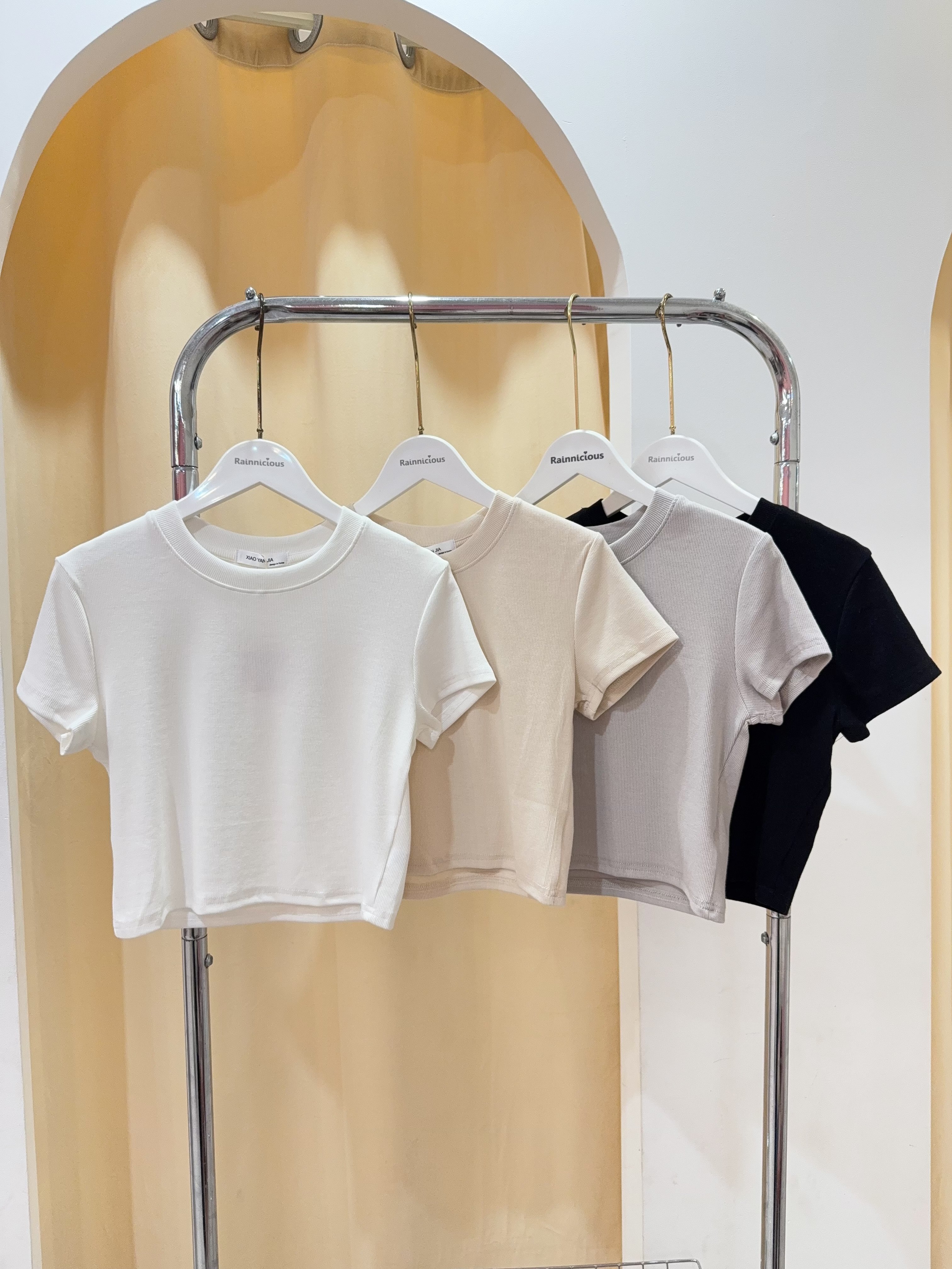 Code: R2747 莫代尔基础款正肩tee Price: Rm35 Color : 白色white / 杏色beige / 冷灰色lightgrey / 黑色black Size : Freesize Bust : 76-124cm Length: 38cm Shoulder: 35cm Sleeve: 13cm