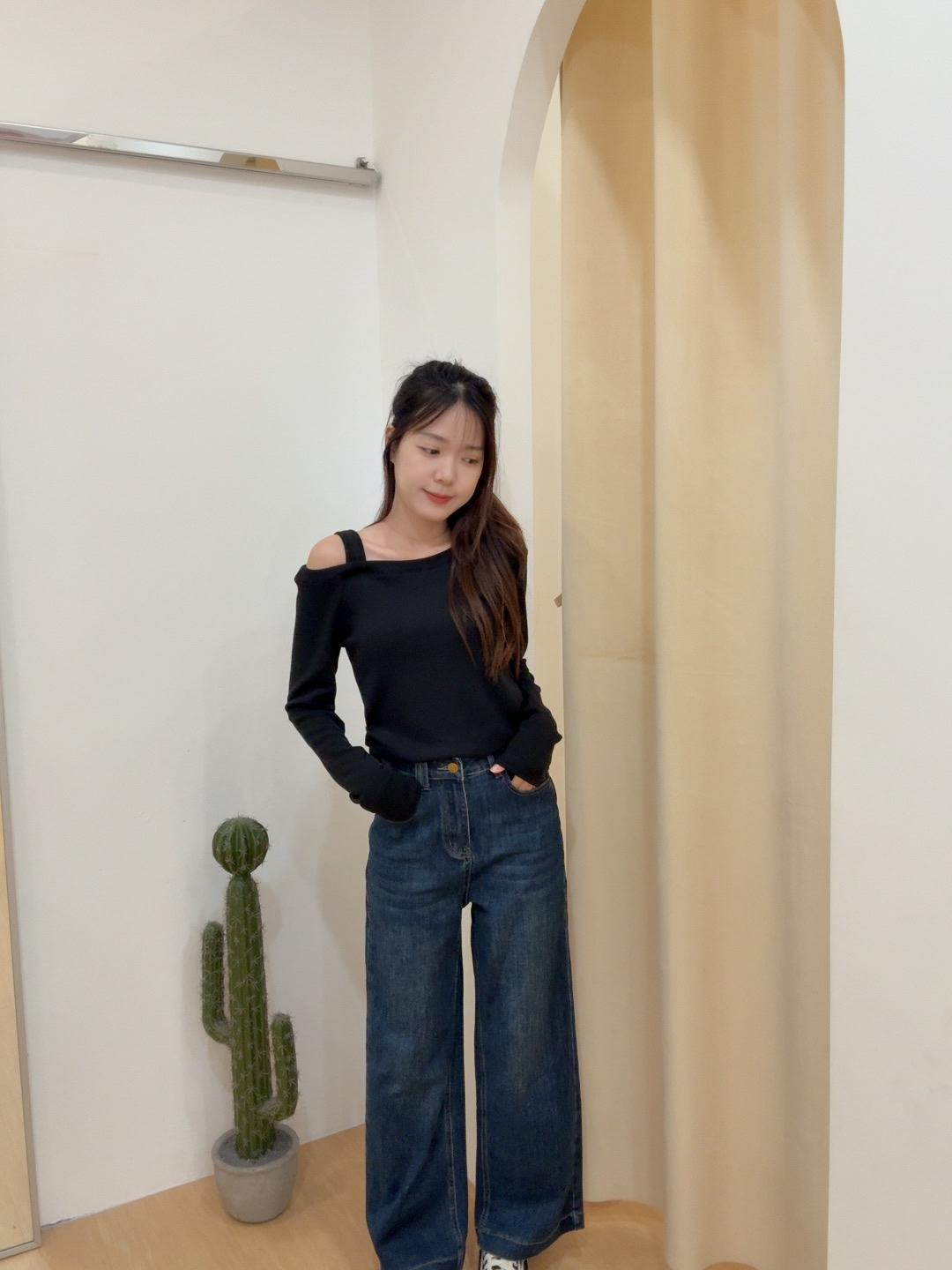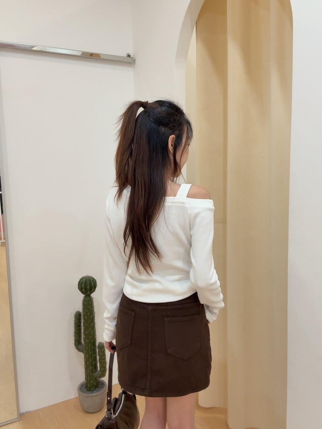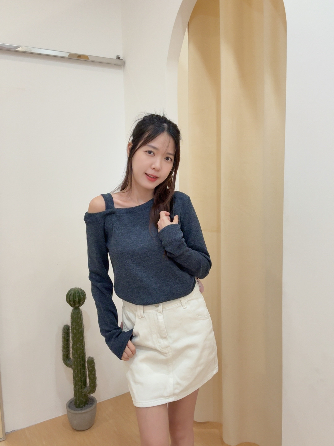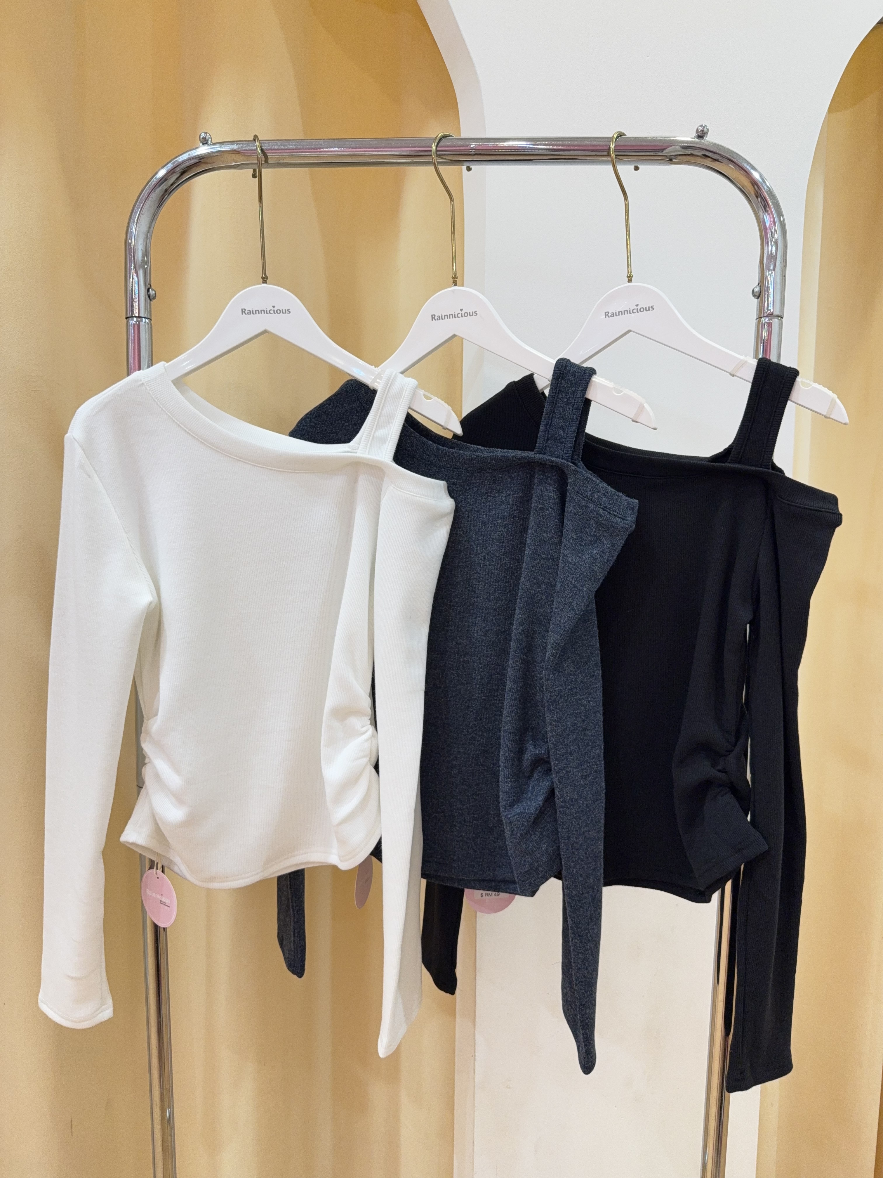 Code:R2823 韩系修身斜露肩抓毛长袖上衣 Price: Rm49 Color : 黑色Black / 白色White / 深蓝色DarkBlue Size : Freesize Bust : 78-120cm Sleeve : 58cm Length : 51cm