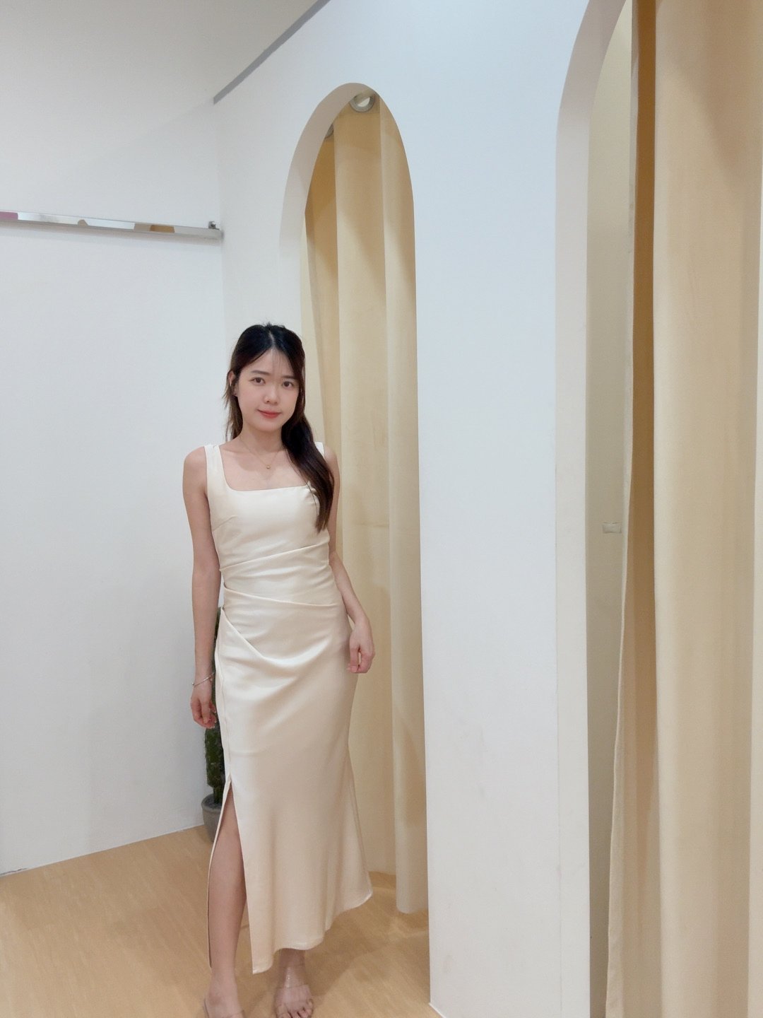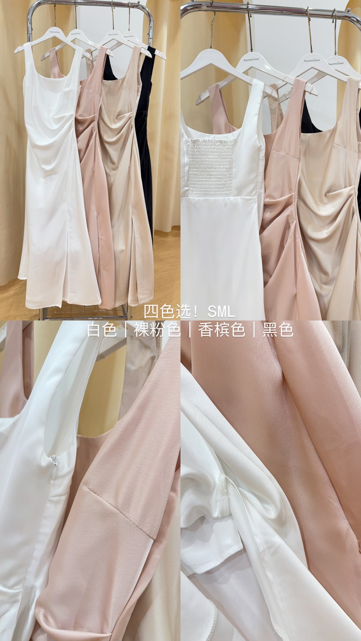 Code: R2749 高端气质大方领缎面开叉连身裙 Price: Rm89 Color : 白色white / 香槟色champagne / 裸粉色pink/ 黑色black Size : S, M, L S Bust : 70-84cm Length : 123cm Waist :62cm Hip : 86cm M Bust : 72-94cm Length : 123cm Waist : 64cm Hip : 94cm L Bust : 80-98cm Length : 123cm Waist : 68cm Hip : 100cm