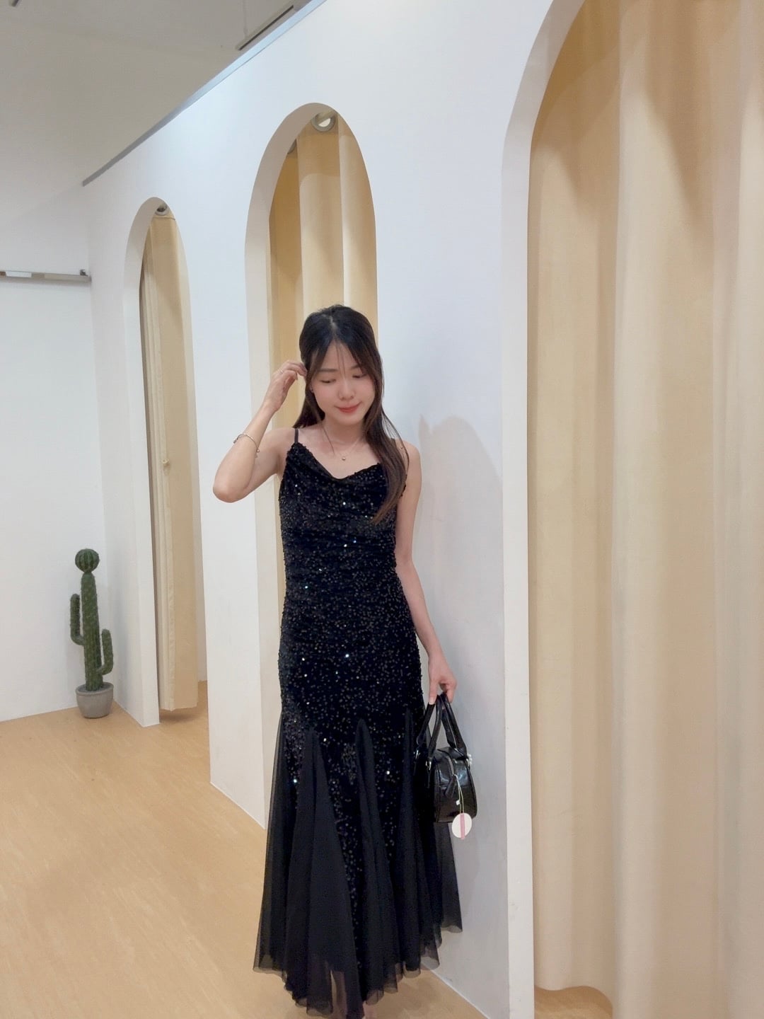 Code:R2867 【星光人鱼姬】名媛高级感亮片丝绒拼接网纱鱼尾礼服裙 Price: Rm89 Color :黑色Black / 奶白CreamWhite Size : S / M / L / XL S Bust : 72cm Length : 115cm Waist : 62cm Hip : 76cm M Bust:76cm Length:117cm Waist:66cm Hip:80cm L Bust:80cm Length:119cm Waist:70cm Hip:98cm XL Bust:82cm Length:119cm Waist:74cm Hip:110cm