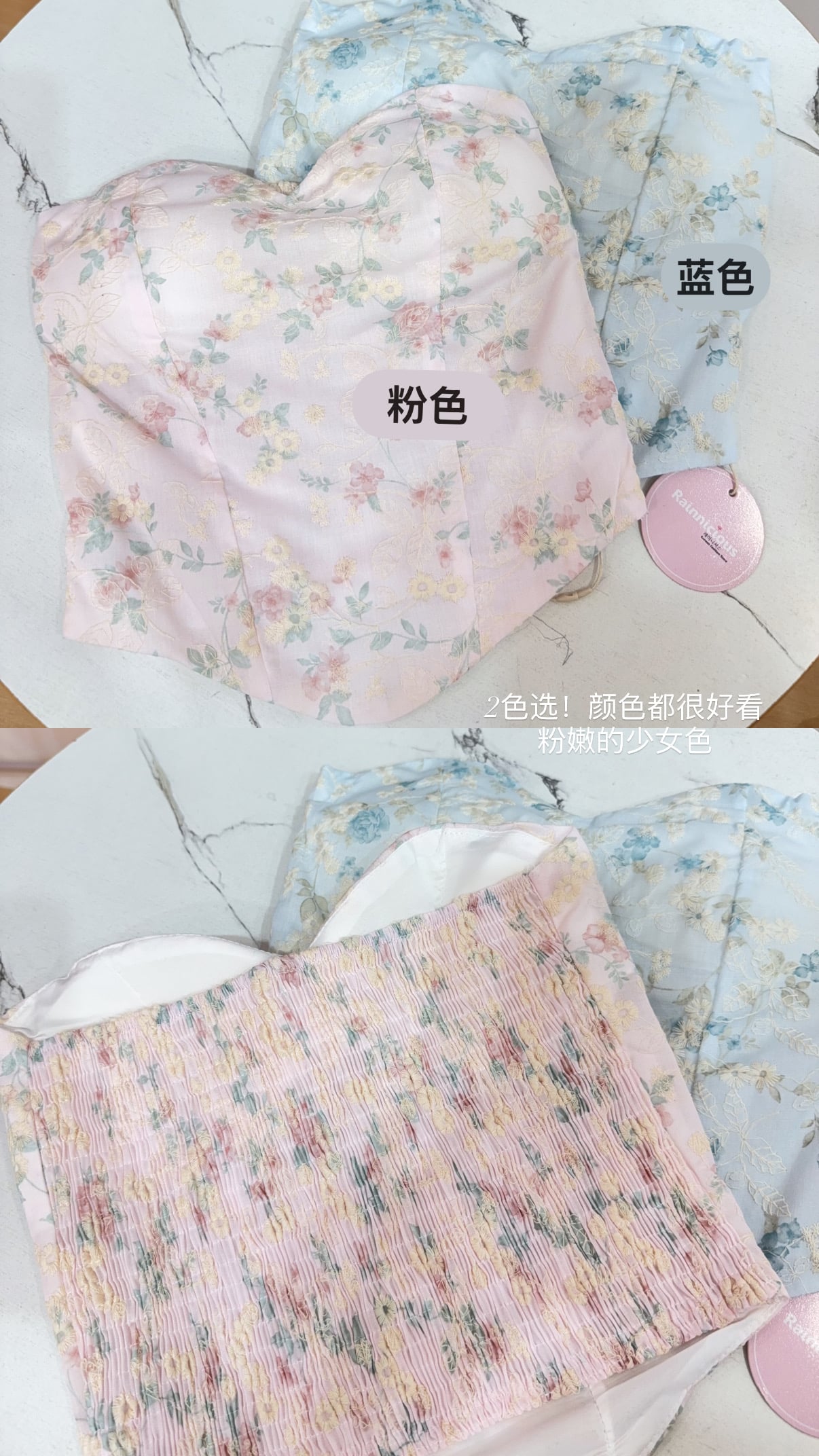 Code:R2719刺绣碎花抹胸鱼骨背心 Price: Rm35 Color :粉色Pink / 蓝色Blue Size : Freesize Bust : 62-90cm Length : 33cm