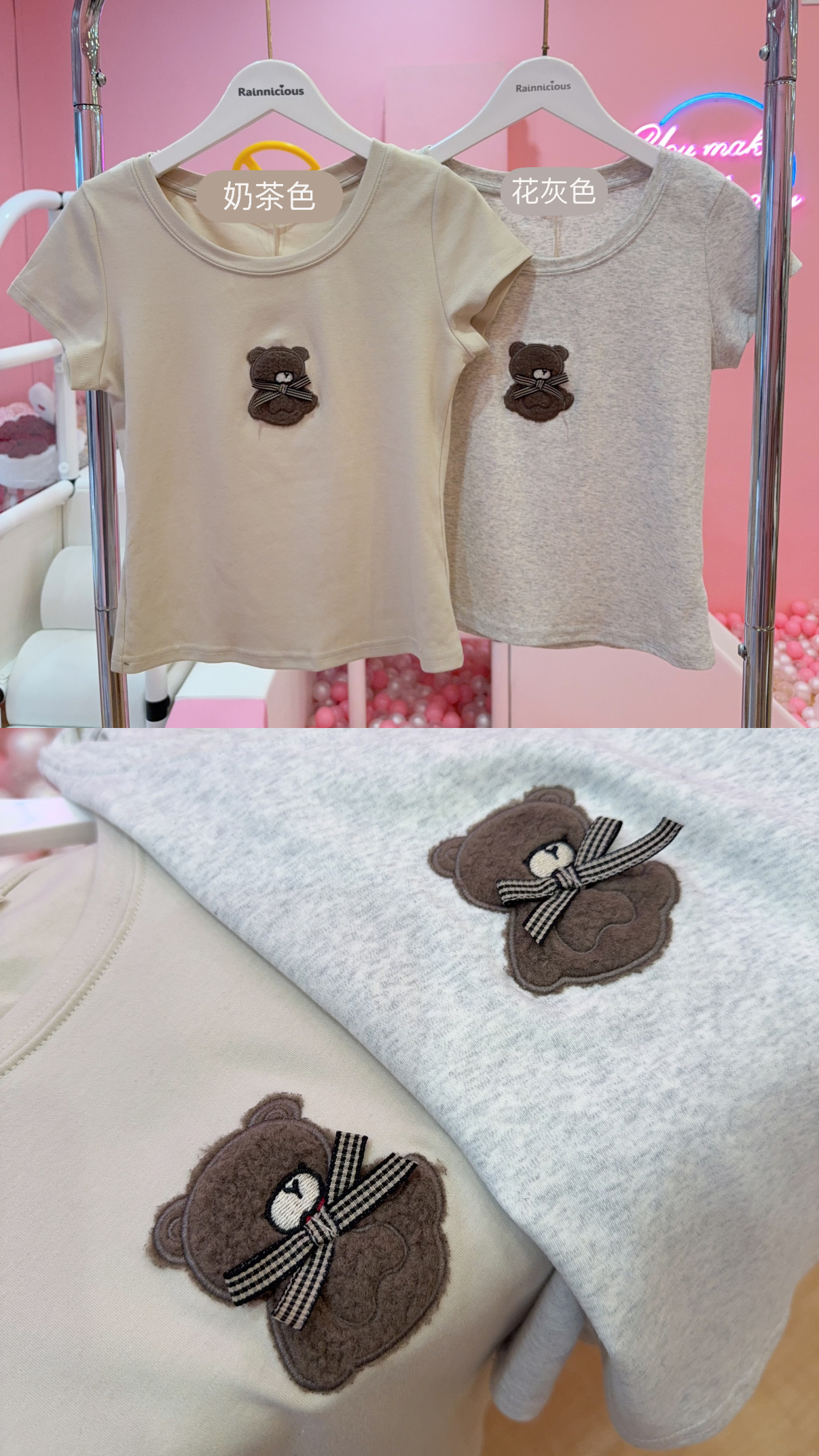 Code: R2581 复古毛绒熊熊修身短上衣 Price: Rm35 Color :奶茶色Milktea / 花灰色LightGrey Size : Freesize Bust : 70-116cm Sleeve : 11cm Length :44cm Shoulder:32cm