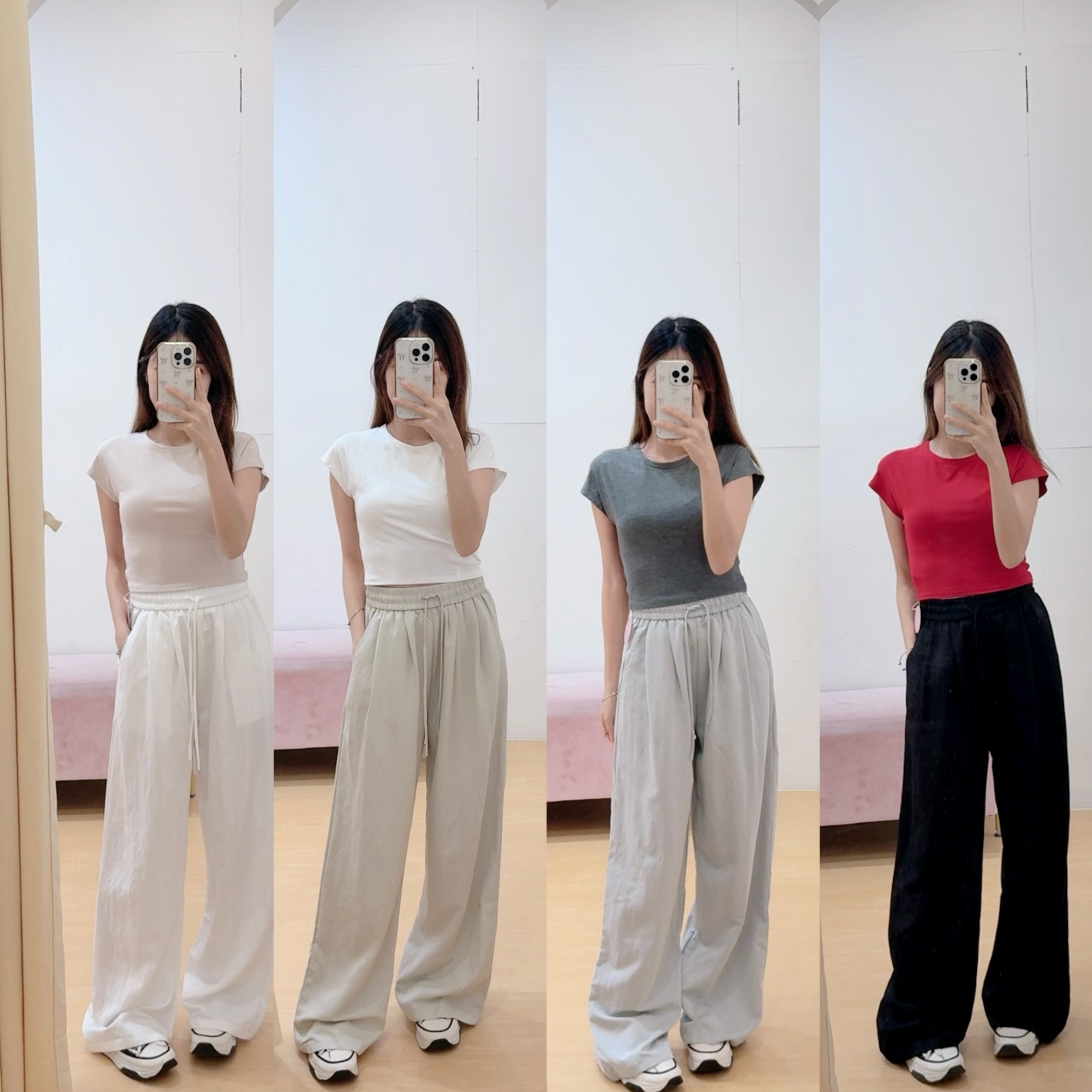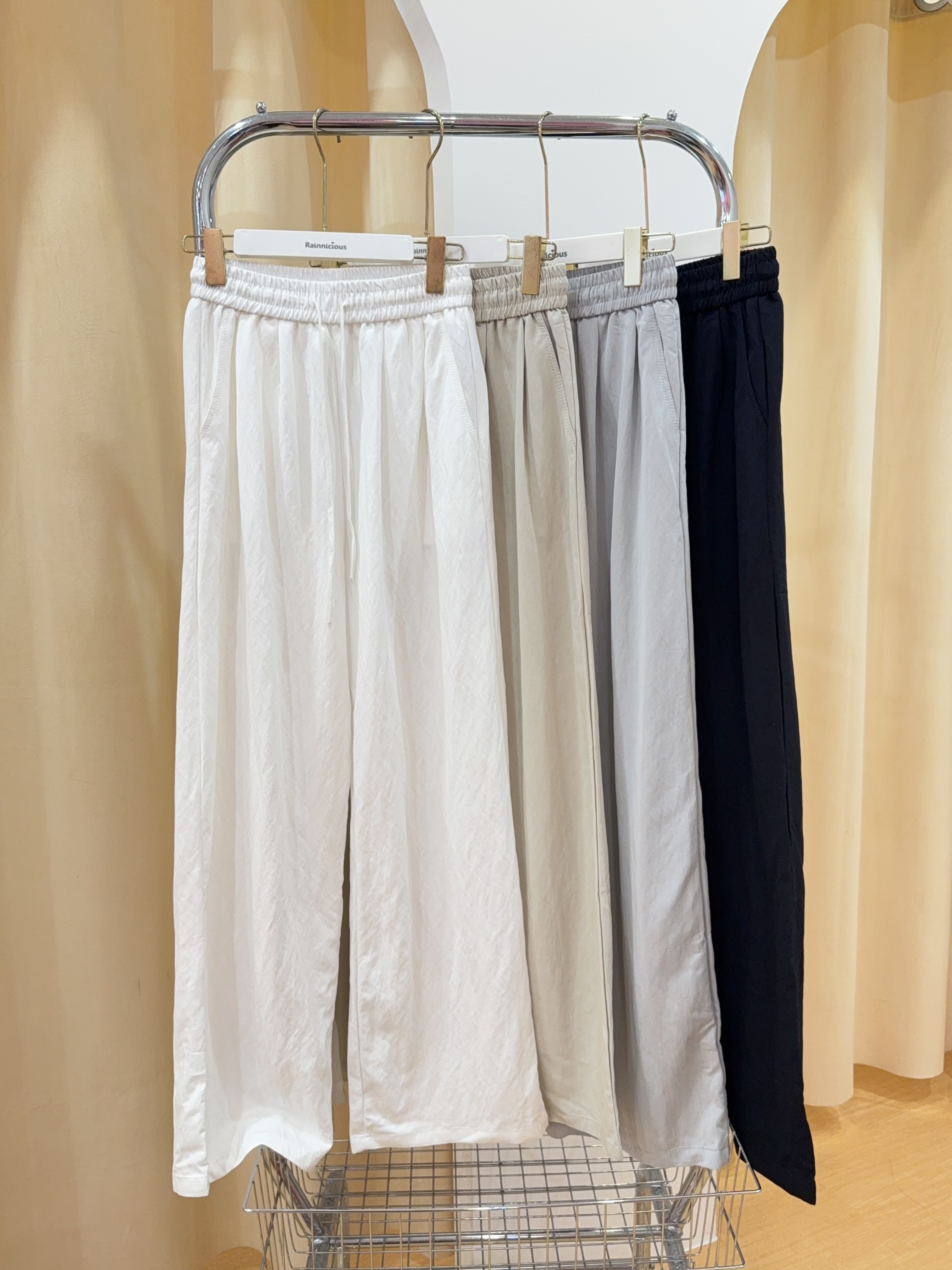 Code: R2593 天丝亚麻山本阔腿长裤 Price: Rm55 Color : 黑色Black / 白色White / 灰蓝色GreyBlue / 浅卡其LightKhaki Size : Freesize Length : 106cm Waist : 62-90cm Hip : 110cm