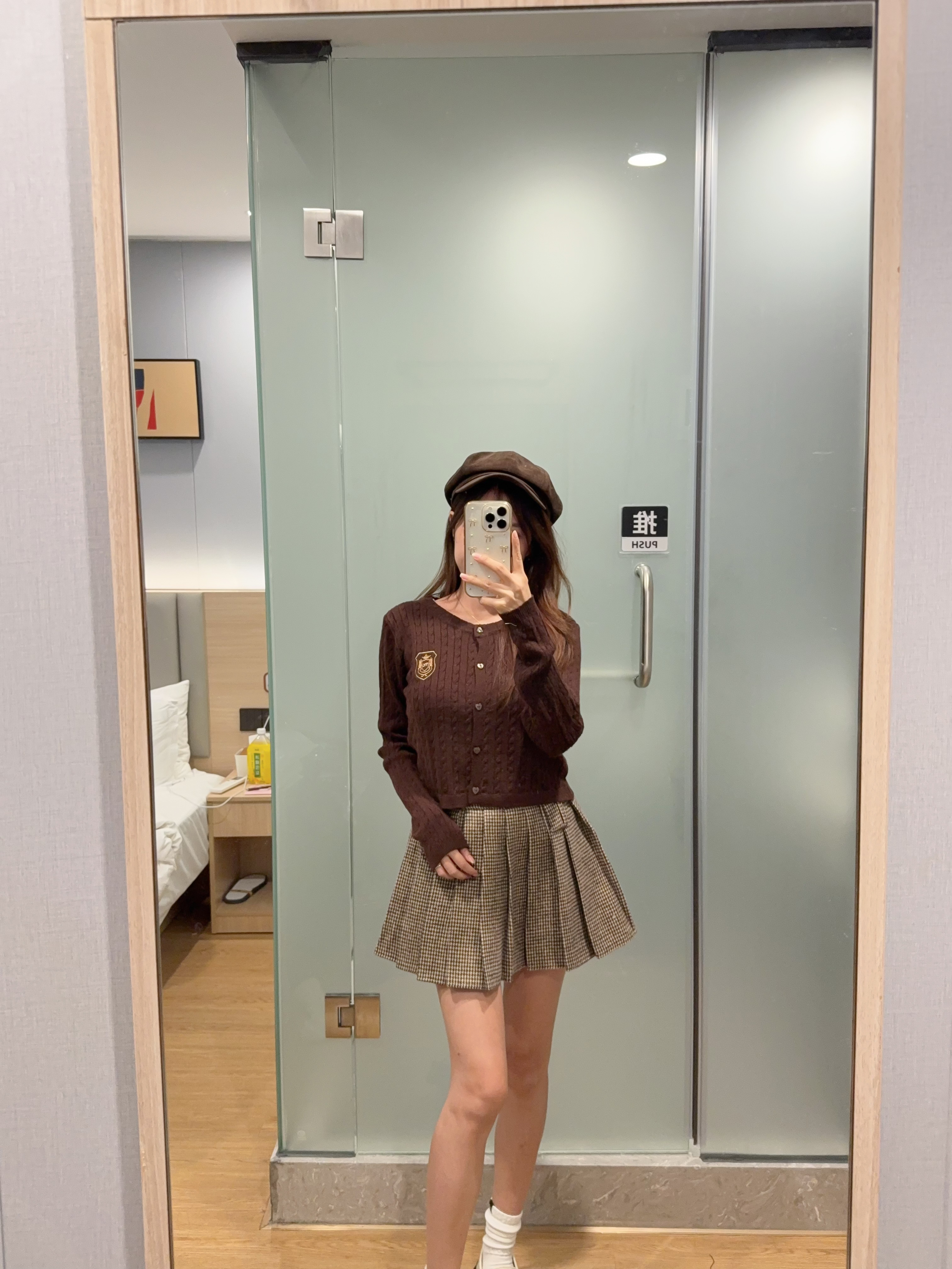 学院风麻花针织短版外套上衣R2811