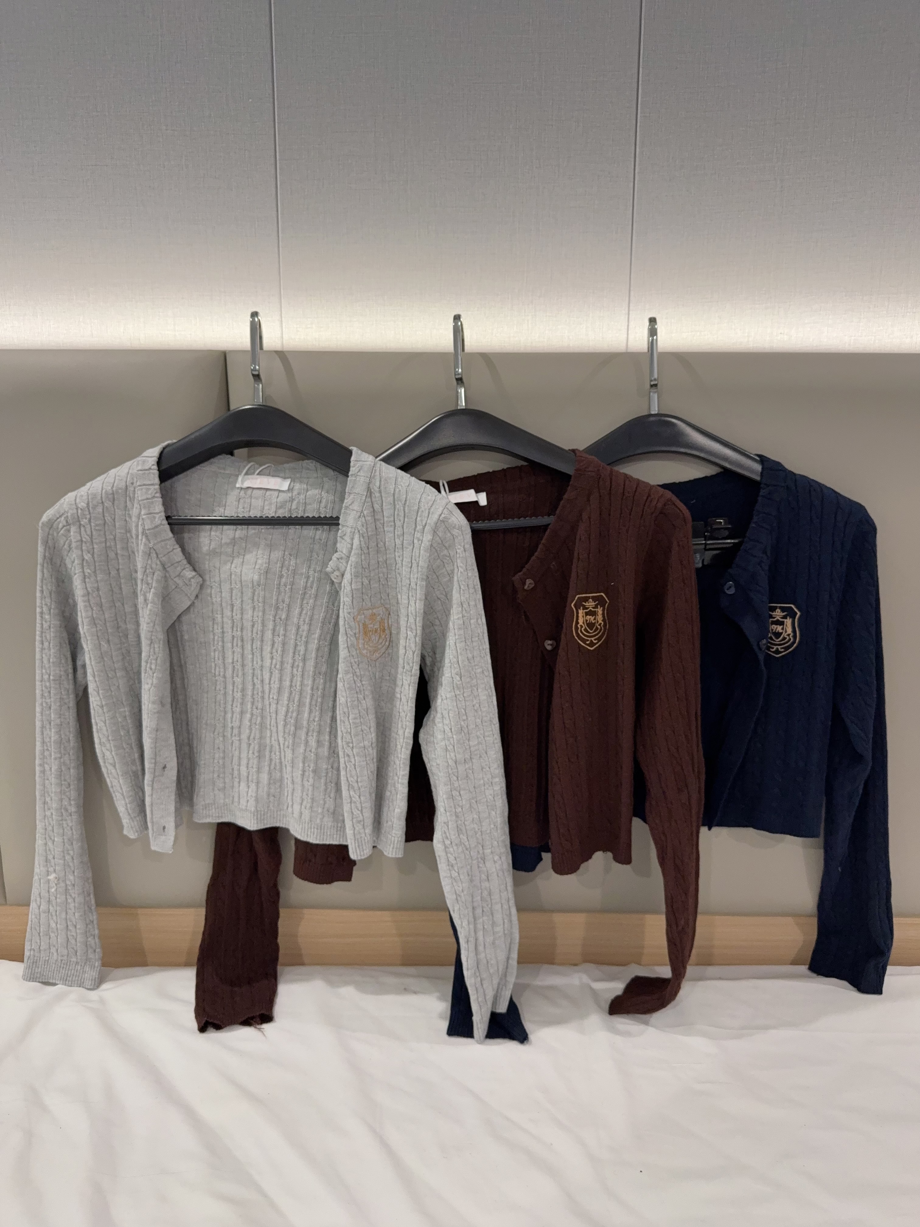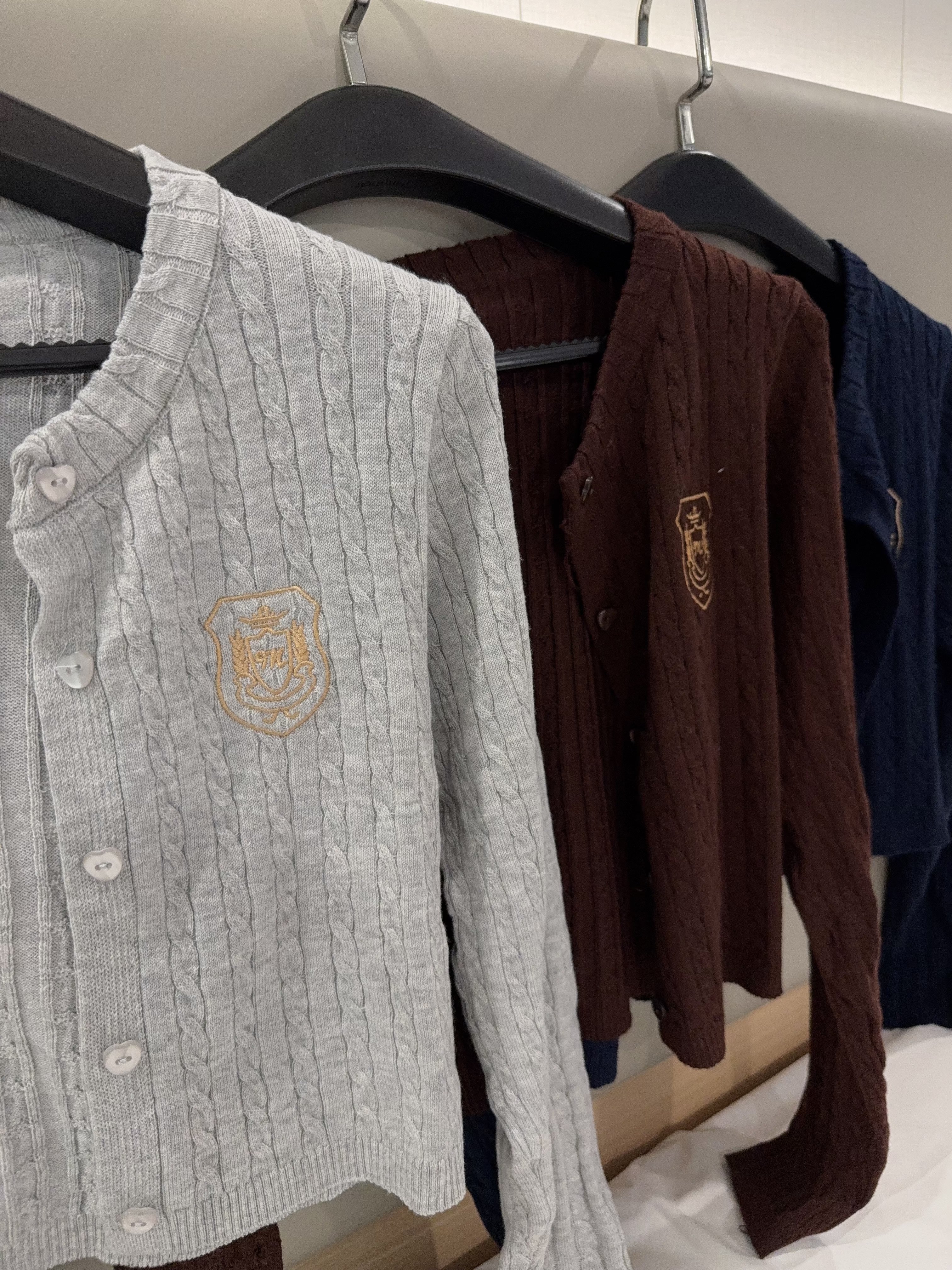 Code: R2811 学院风麻花针织短版外套上衣 Price: Rm49 Color :灰色Grey/可可色Brown/深蓝色Blue Size : Freesize Bust:86cm Length:40cm Shoulder: 35cm Sleeve:55cm