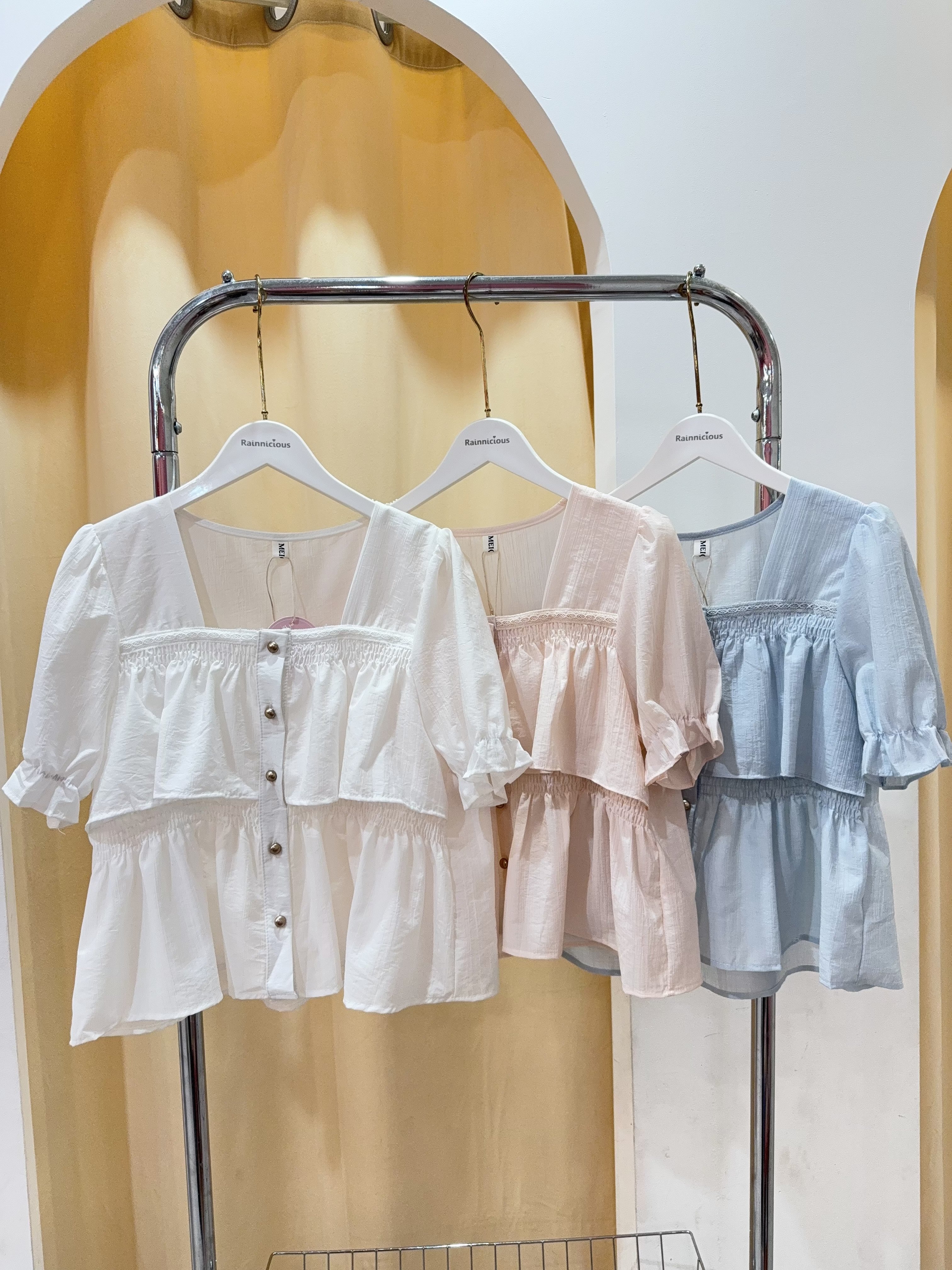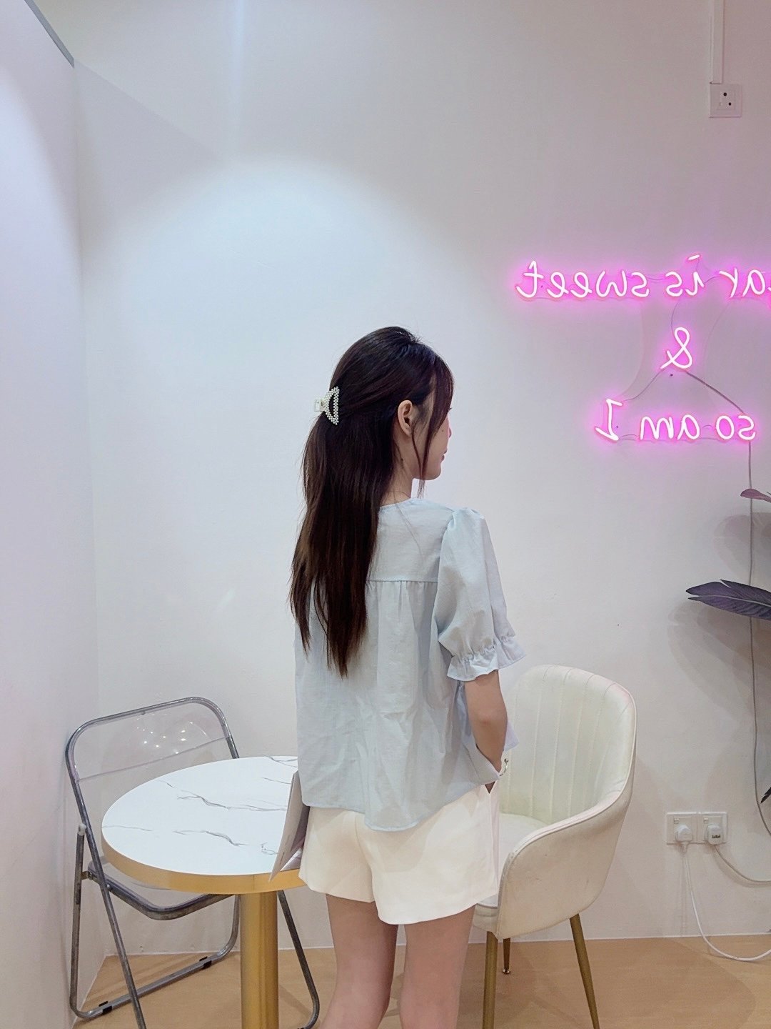 Code: R2703 方领泡泡袖娃娃衫上衣 Price: Rm39 Color : 白色white / 粉色pink / 蓝色blue Size : Freesize Bust: 102cm Length: 48cm Shoulder: 31cm Sleeve: 24cm