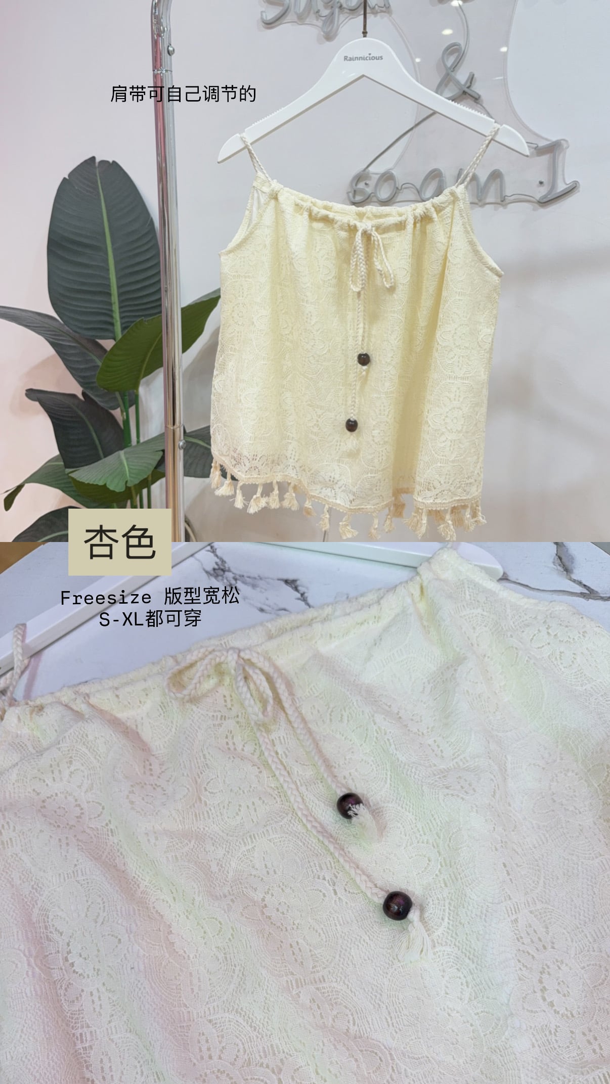 Code:R2412 波西米提花系带流苏吊带背心 Price: Rm39 Color :杏色Beige Size : Freesize Bust : 106cm Length : 43cm