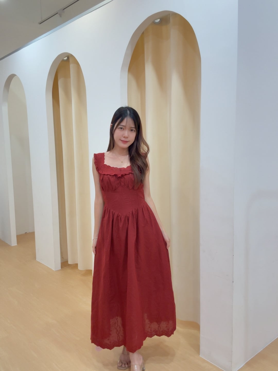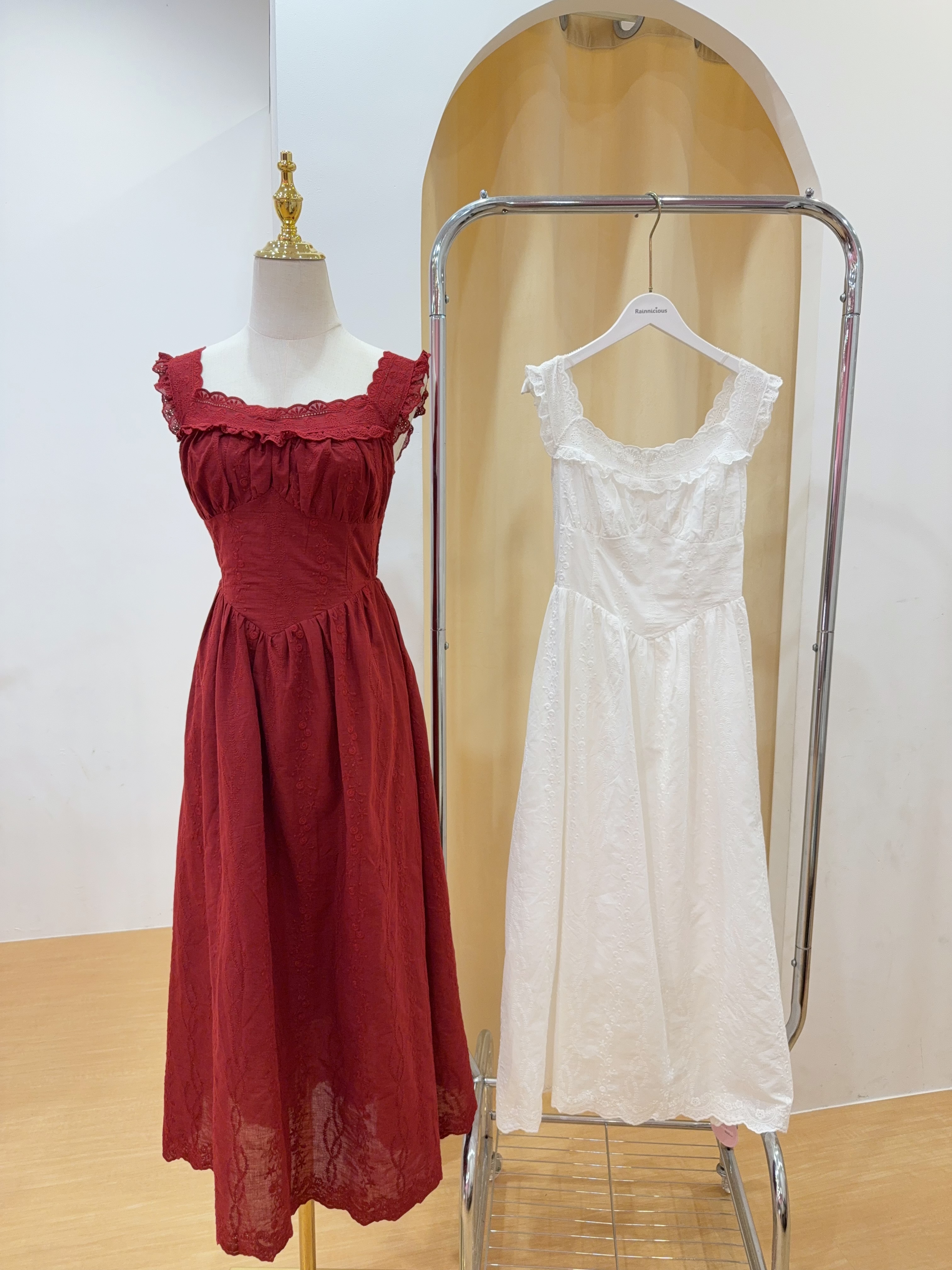 Code:R2773 温柔甜美蕾丝花边连身长裙 Price: Rm89 Color :白色White / 红色Red Size : Freesize Bust : 72-100cm Length : 120 cm Waist : 62-98cm Hip : 140cm