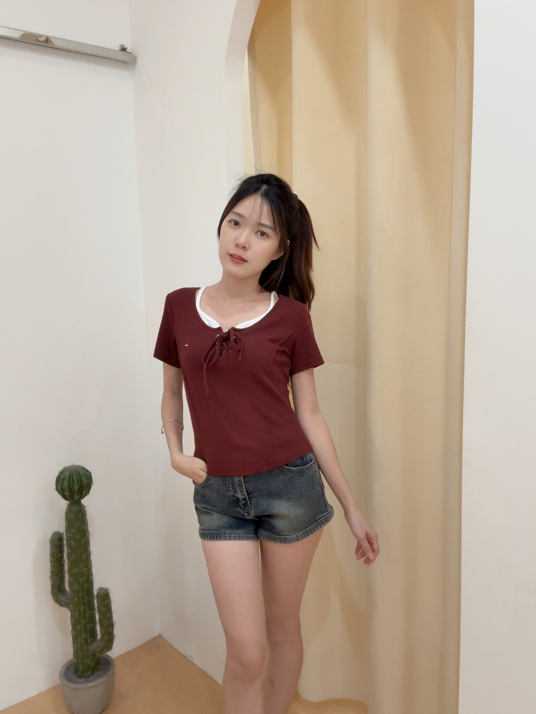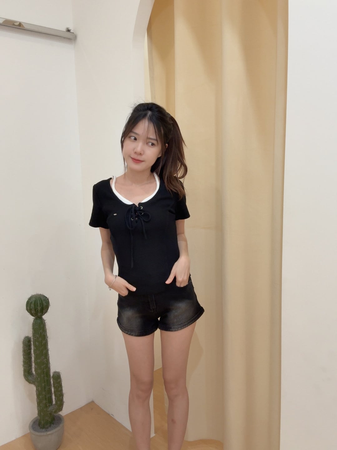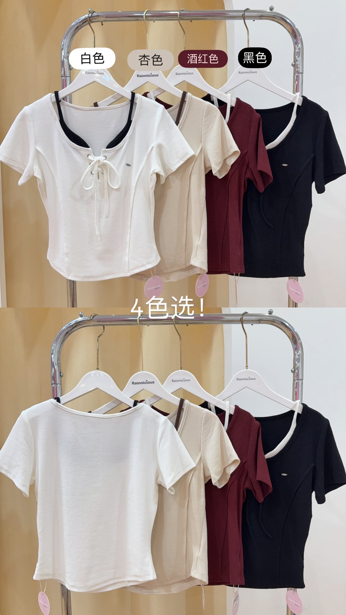 Code: R2876 甜酷风假两件系带鱼骨短上衣 Price: Rm35 Color :黑色Black / 白色White / 酒红色MaroonRed / 杏色Beige Size : Freesize Bust : 78-120cm Sleeve : 15cm Length : 44cm Shoulder:32cm