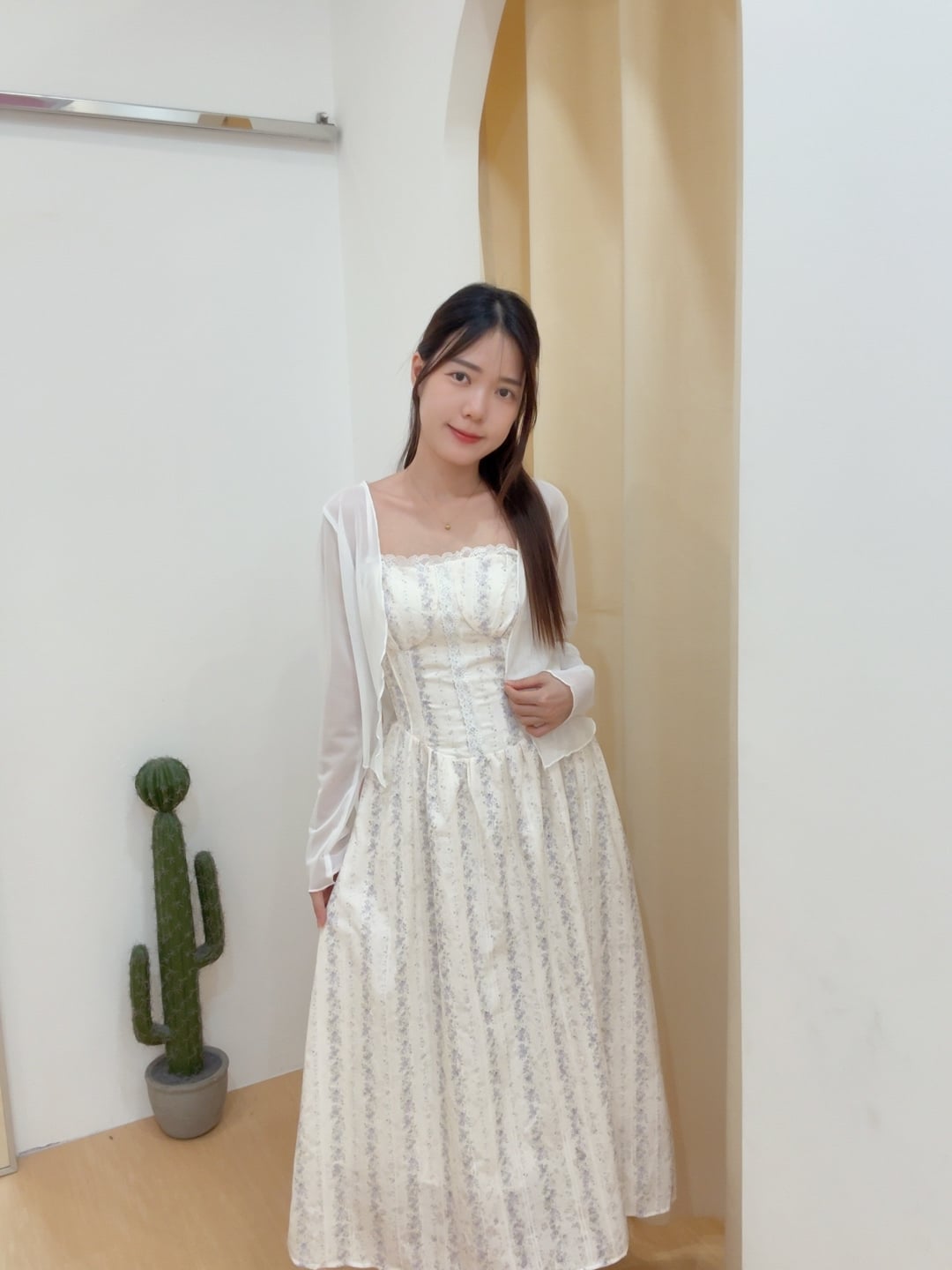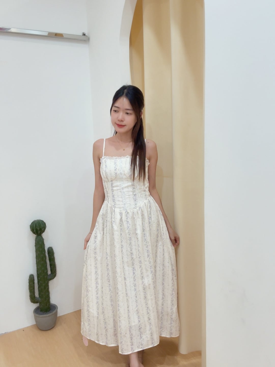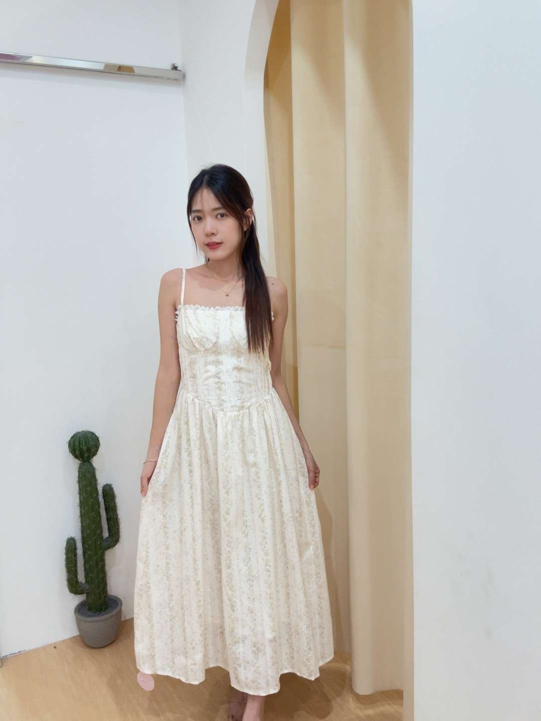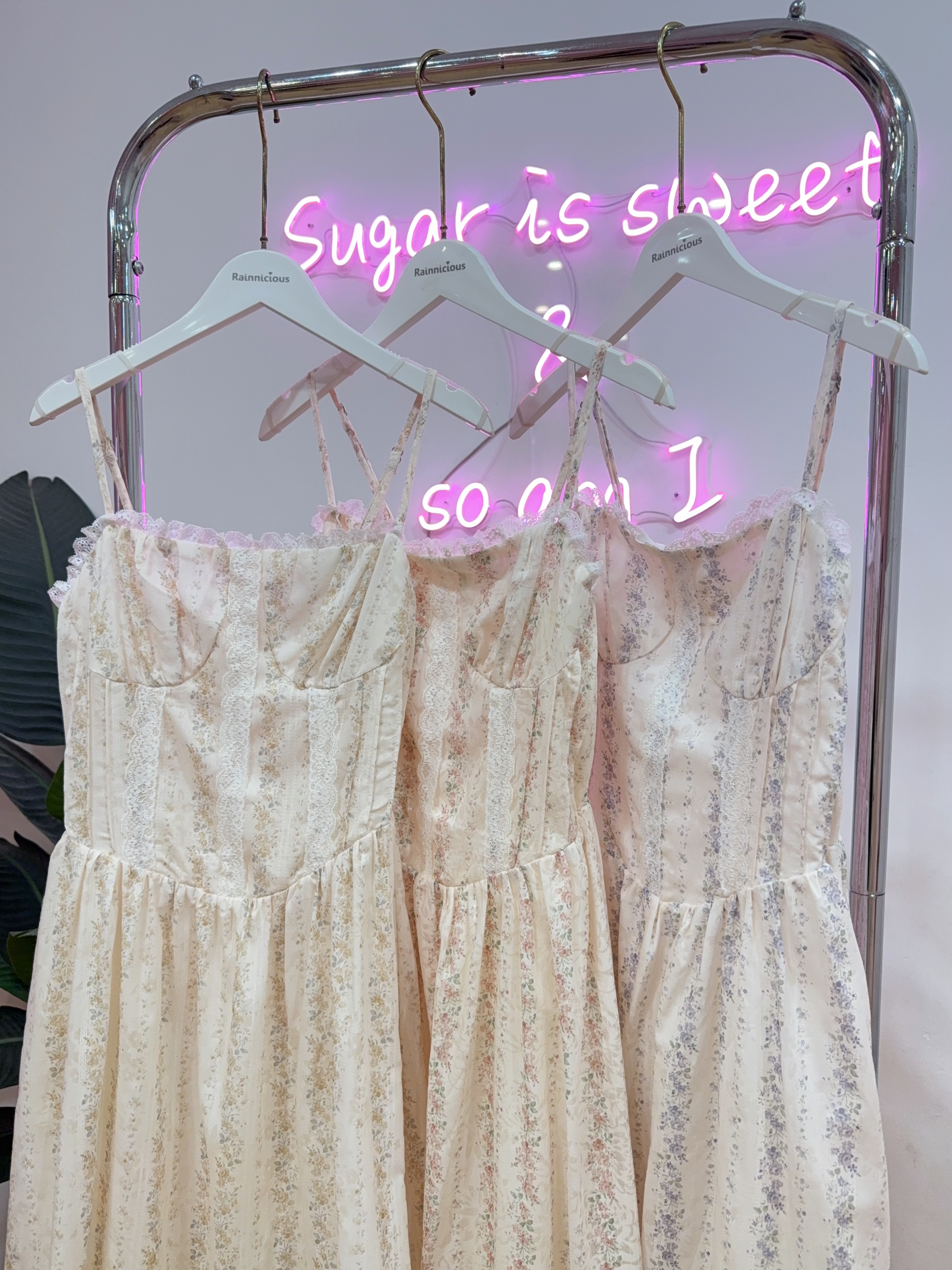 Code:R2604 田园风碎花蕾丝吊带连身长裙 Price: Rm79 Color :杏色Beige / 粉色Pink / 薰衣草色Lavender Size : Freesize Bust : 68-100cm Length : 102cm(不包括肩带测量) Waist : 56-80cm Hip : 132cm