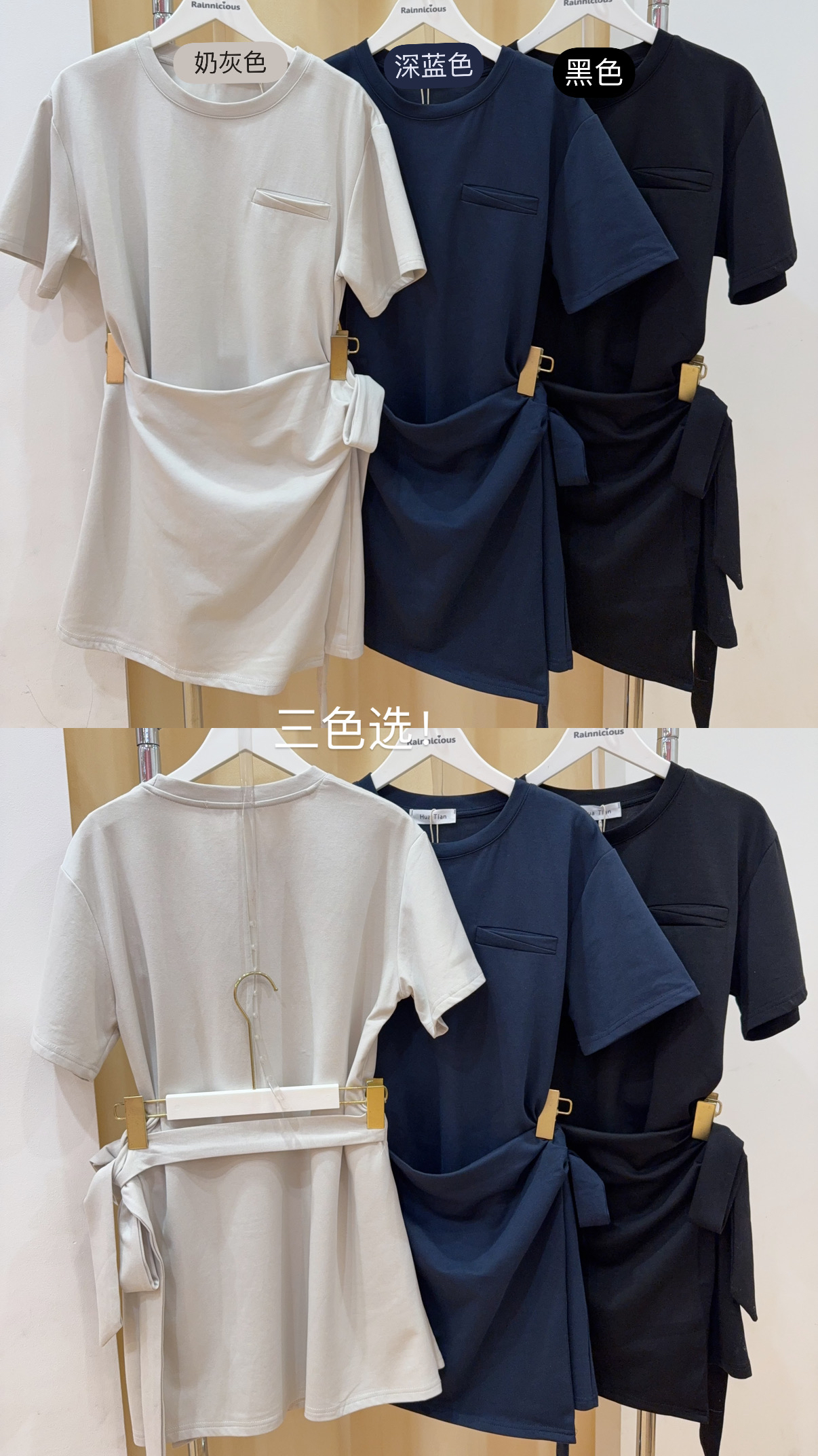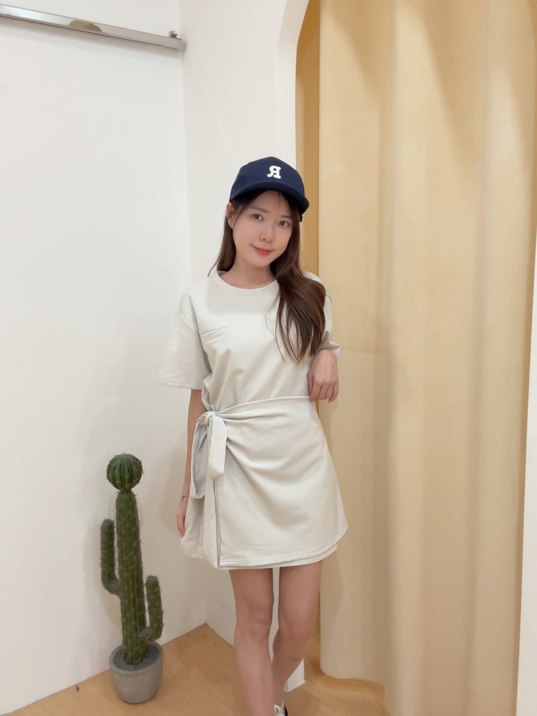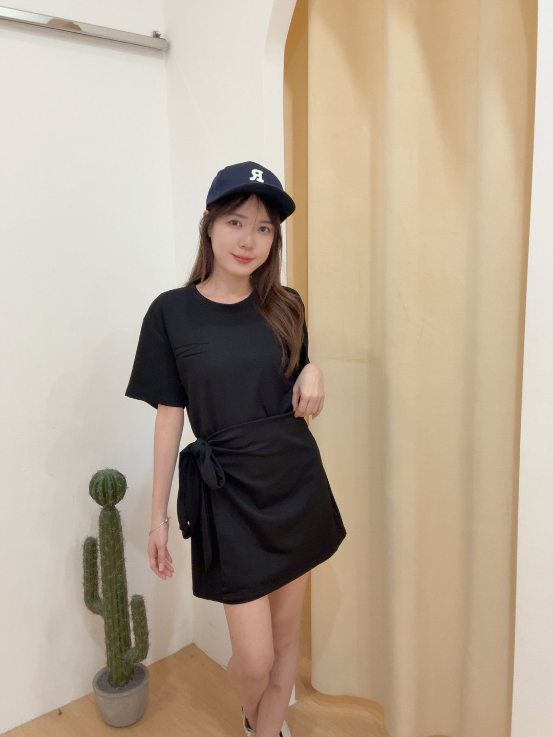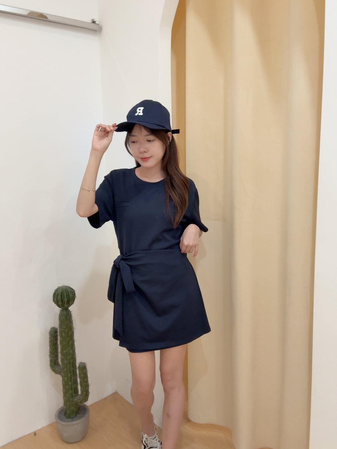 Code:R2696 简约休闲系带设计感纯棉连身裙 Price: Rm55 Color :黑色Black / 深蓝色DarkBlue / 奶灰色LightGrey Size : Freesize Bust : 96-116cm Sleeve : 19cm Length : 77cm Waist : 92-104cm Hip : 110cm Shoulder:43cm