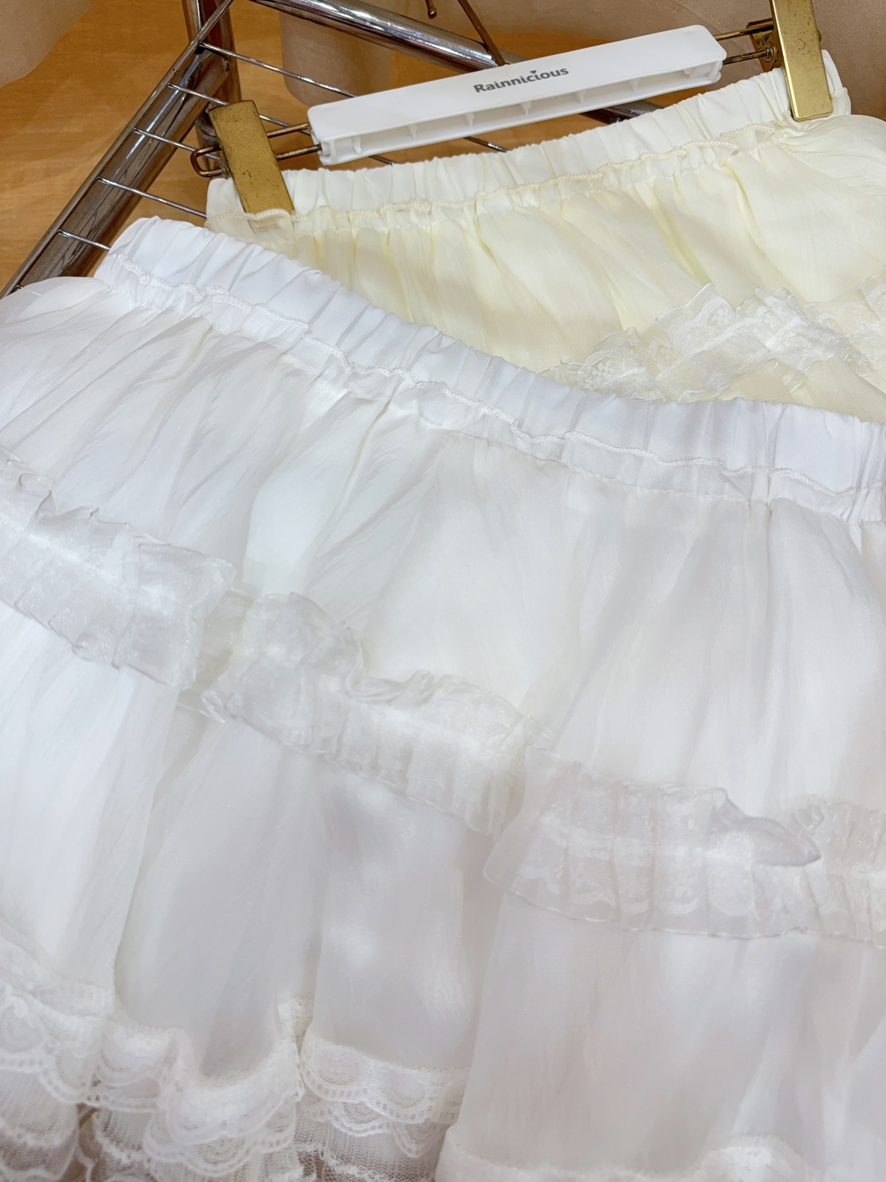 Code:R2641芭蕾风蕾丝仙纱蛋糕半身短裙 Price: Rm49 Color :白色White / 奶油色cream Size :Freesize Length : 33cm Waist : 56-90cm Hip : 100cm