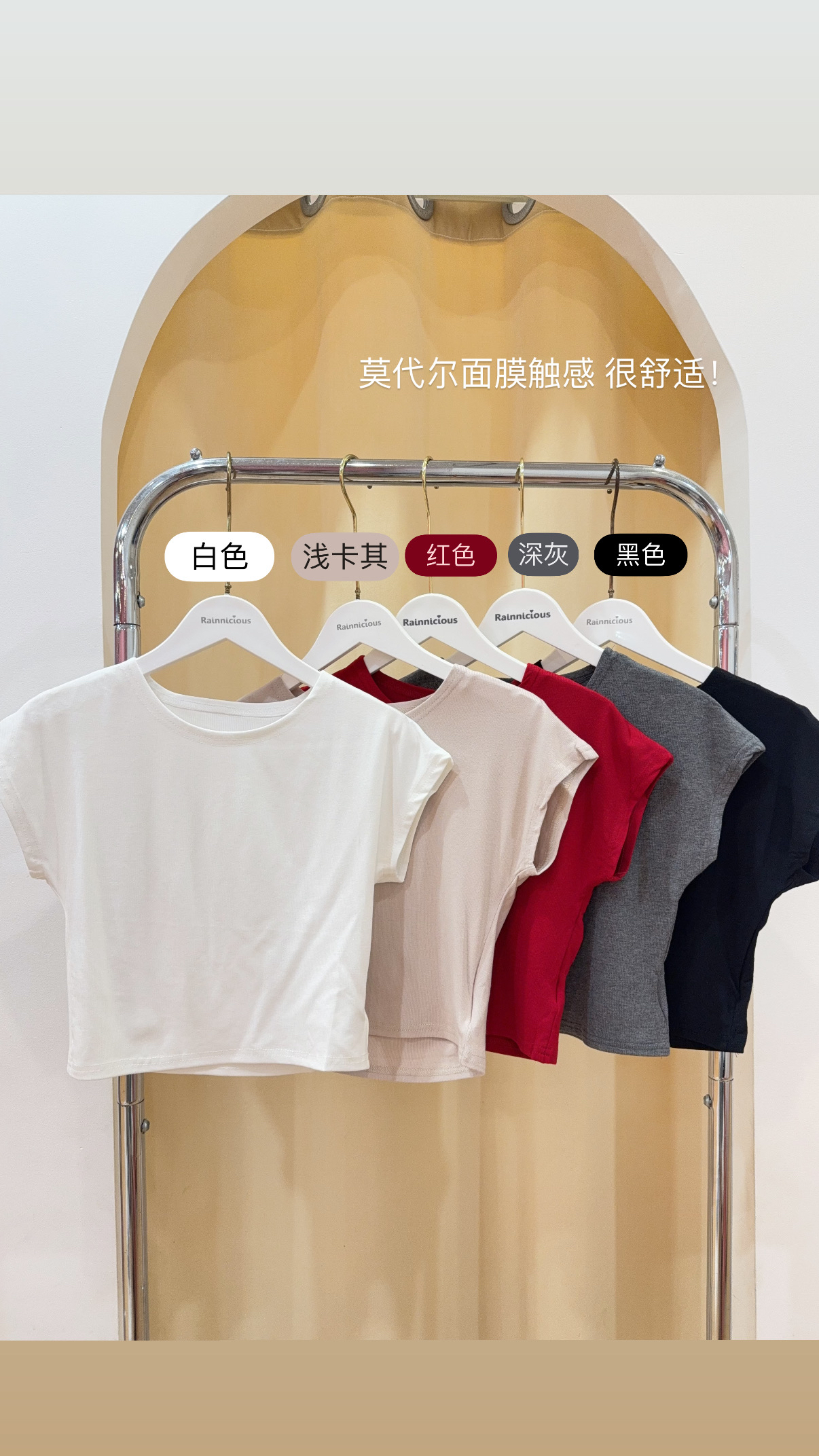 Code: R2688 莫代尔面膜感飞袖短上衣 Price: Rm33 Color : 黑色Black / 白色White / 红色Red / 深灰DarkGrey / 浅卡其LightKhaki Size : Freesize Bust : 70-120cm Length : 39cm