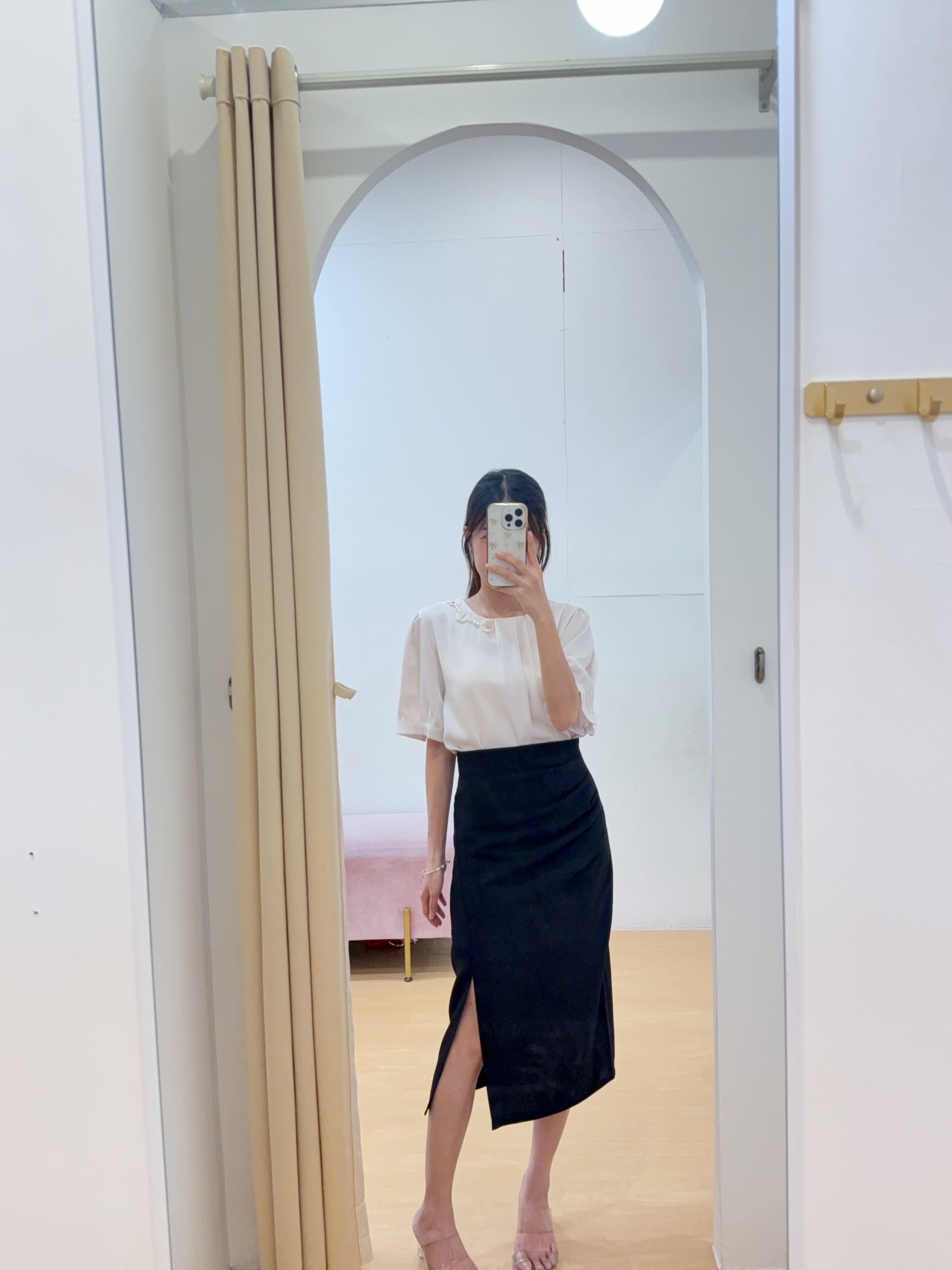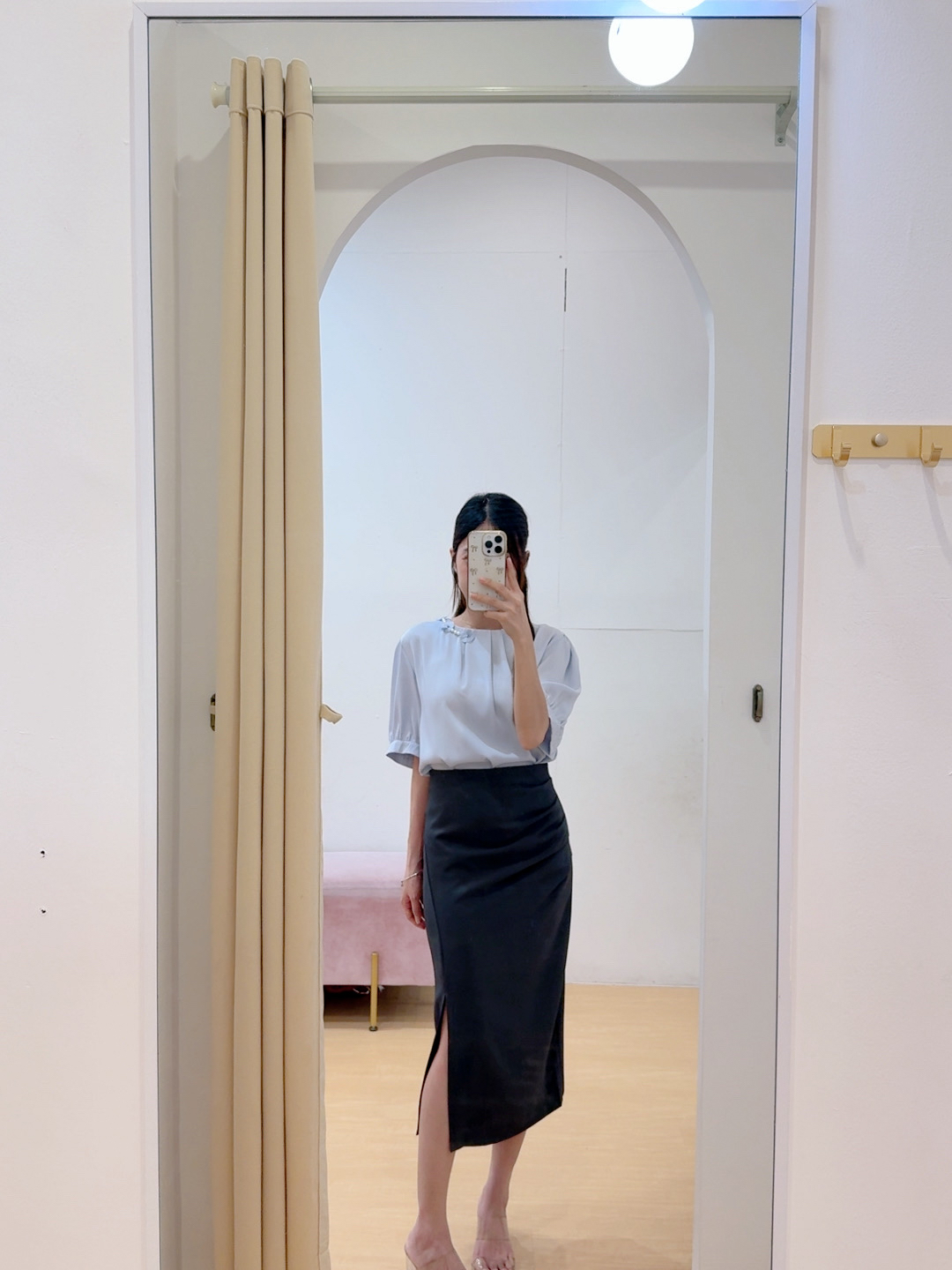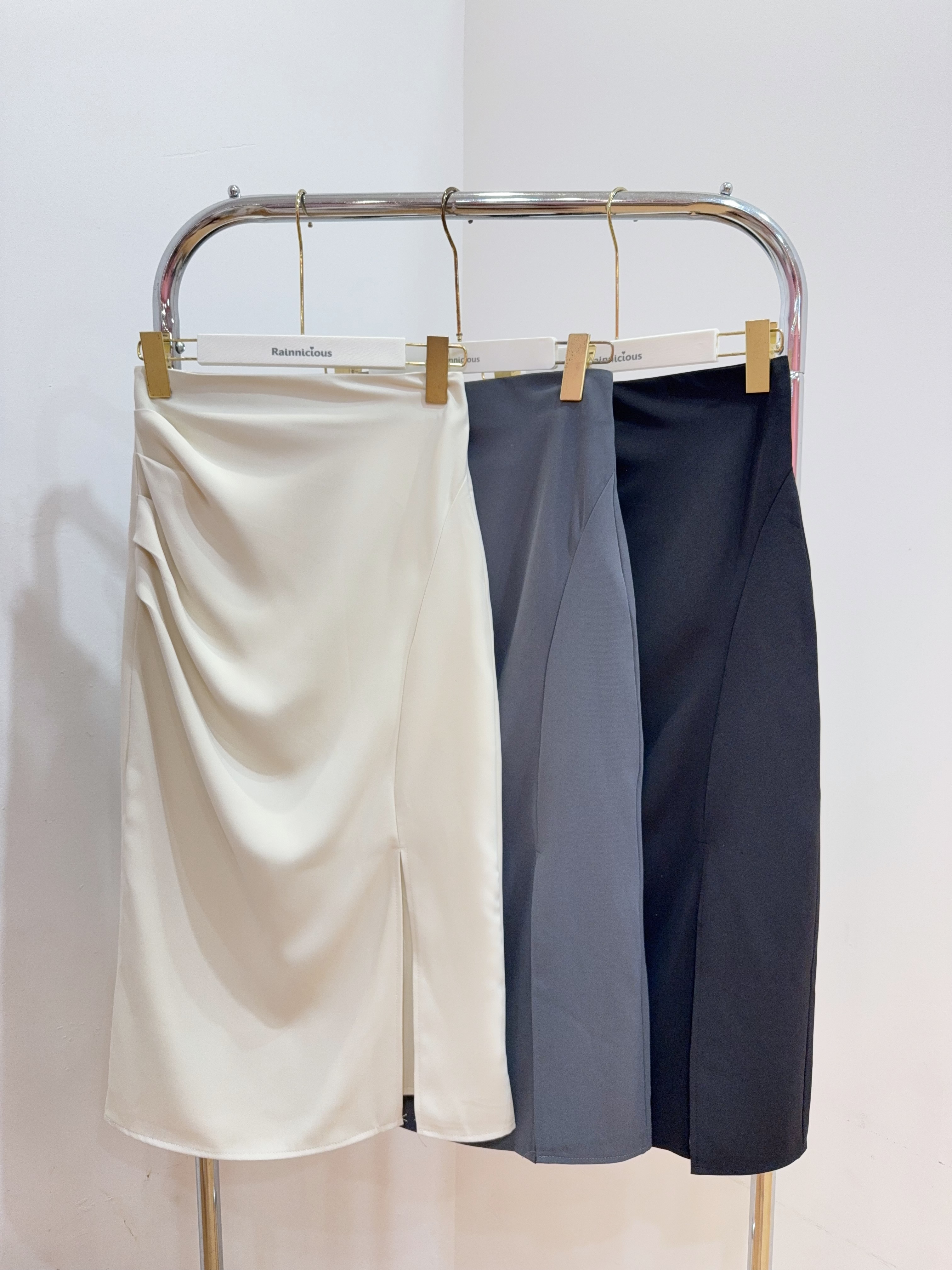 Code:R2427 西装褶皱开叉半身中长裙 Price: Rm59 Color :黑色Black / 杏色Beige / 灰色Grey Size : S / M / L / XL S Length : 73cm Waist : 62cm Hip : 92cm M Length:76cm Waist:66cm Hip:96cm L Length:76cm Waist:70cm Hip:100cm XL Length:78cm Waist:74cm Hip:104cm