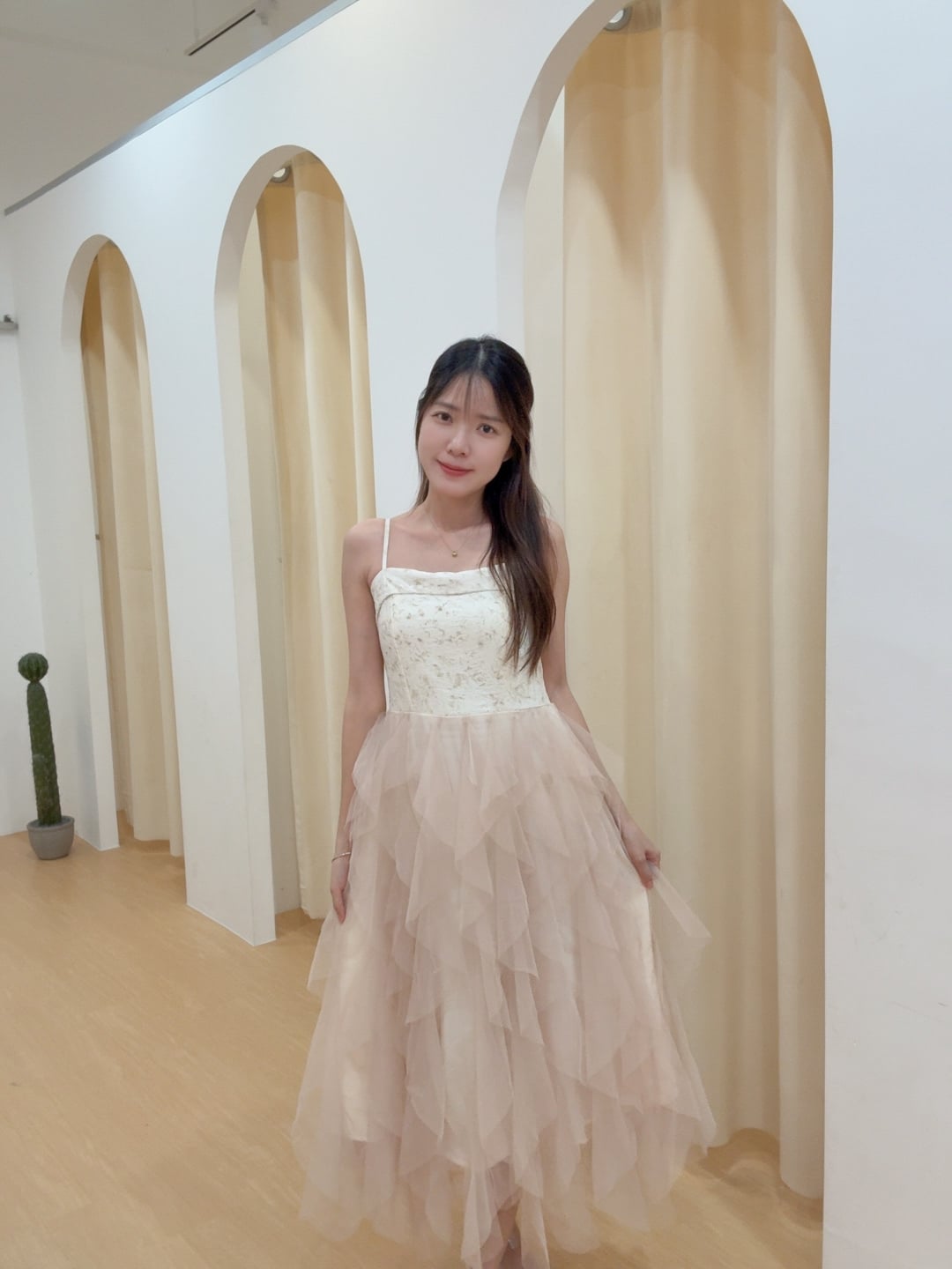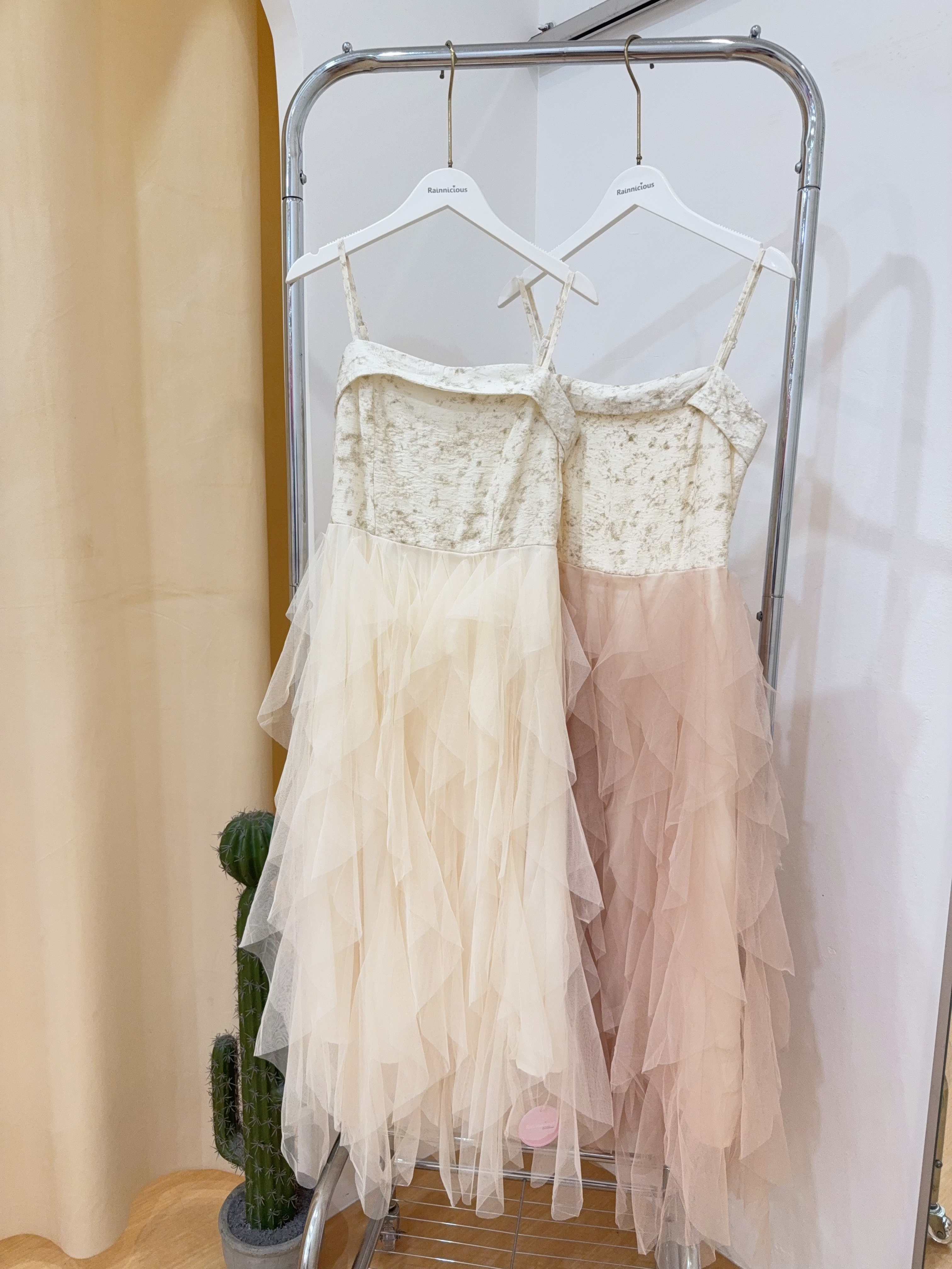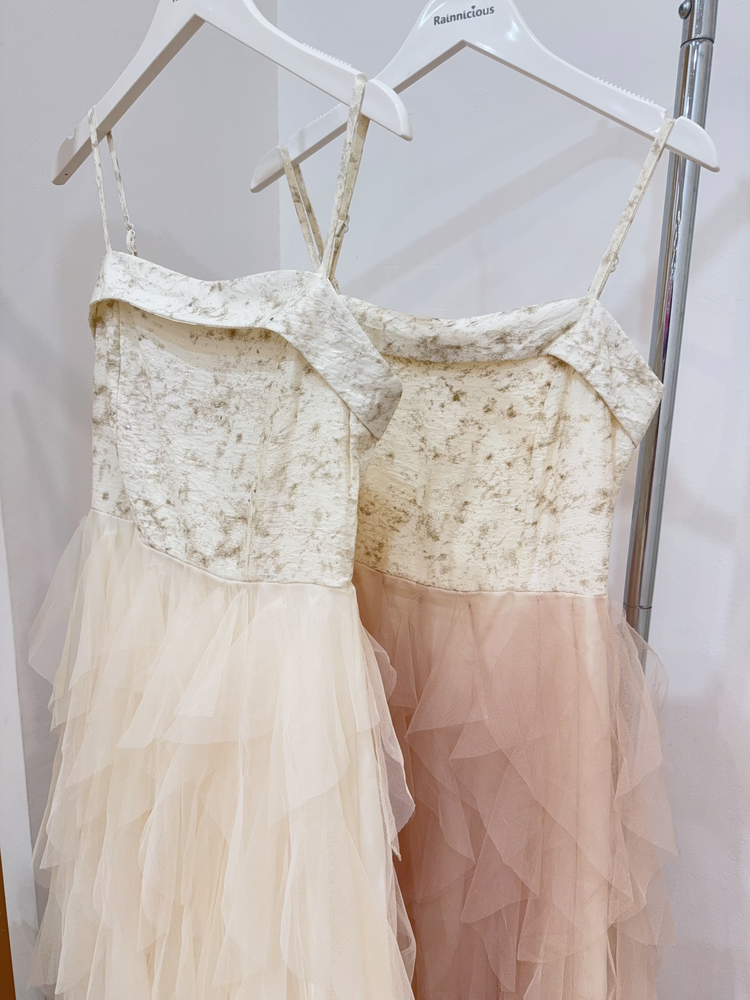 Code:R2610 超仙网纱层次感拼接吊带连身裙 Price: Rm85 Color :杏色Beige / 香槟色Champagne Size : Freesize Bust : 72-90cm Length : 105cm(不含背带) Waist : 64-90cm Hip : 120cm