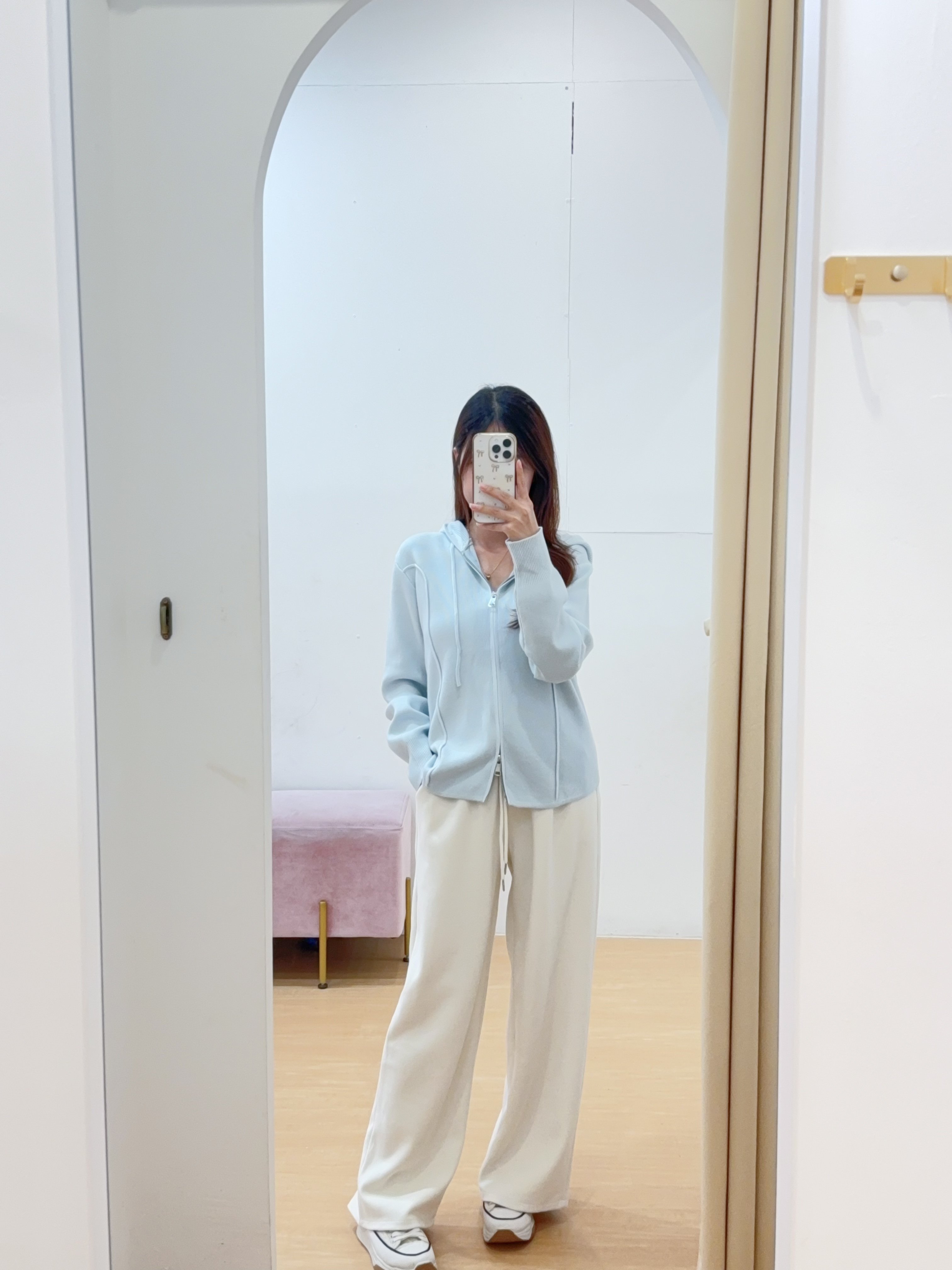 Code:R2706 软糯糯双拉链连帽外套上衣 Price: Rm59 Color :奶白CreamWhite / 浅蓝LightBlue / 粉色Pink / 灰色Grey / 可可燕麦OatBrown Size : Freesize Bust : 106cm Sleeve : 58cm Length : 55cm Shoulder:41cm