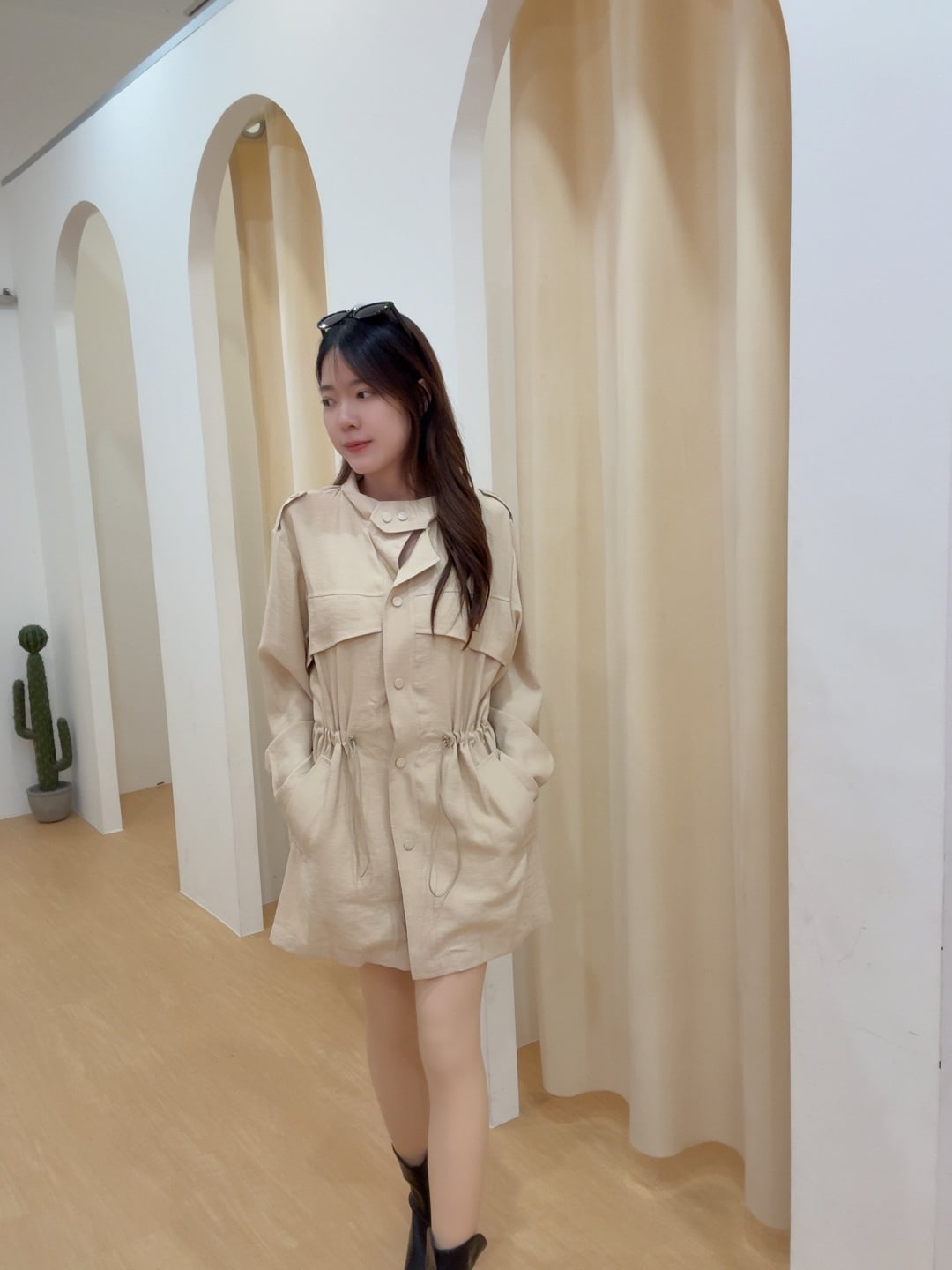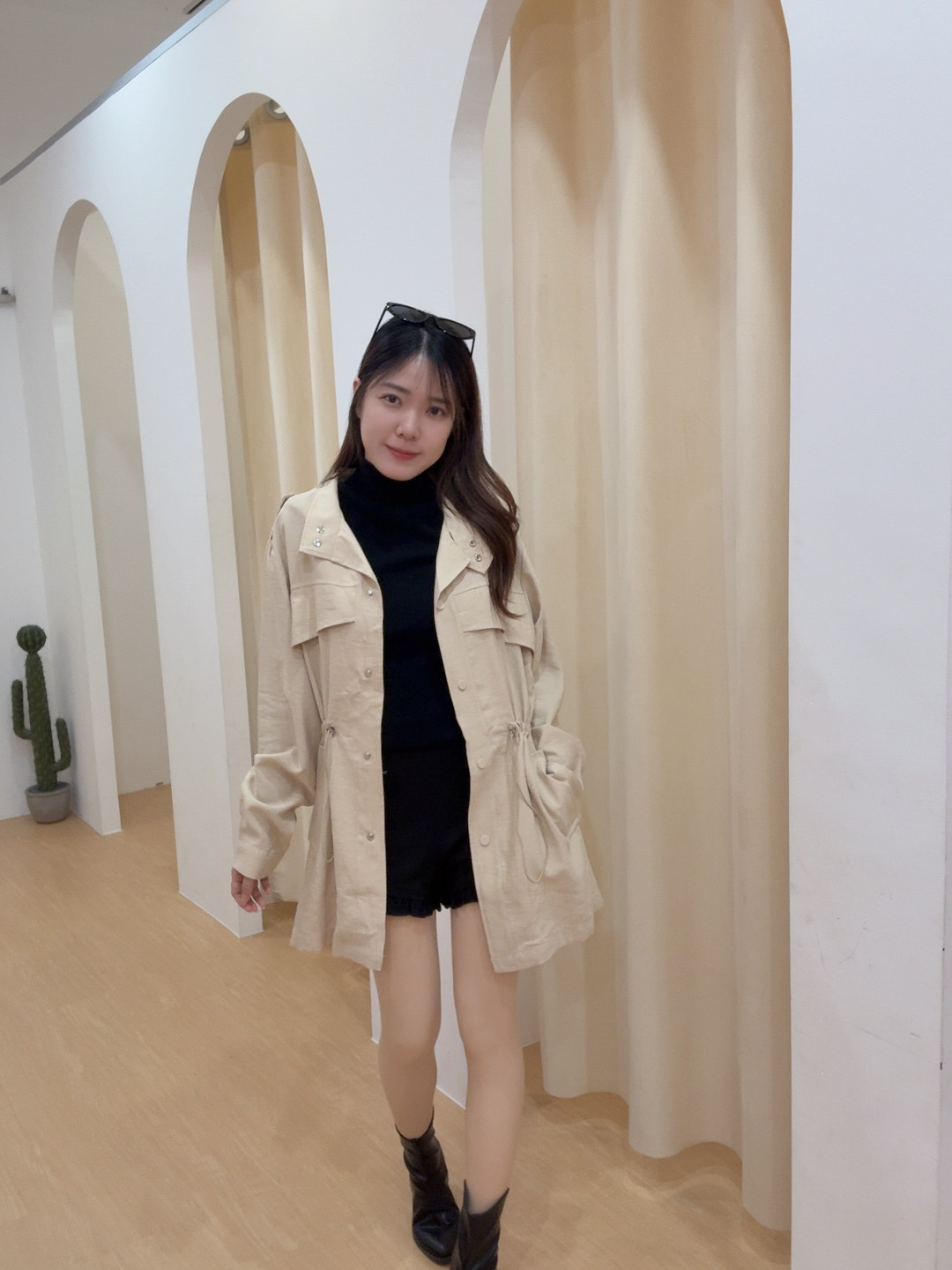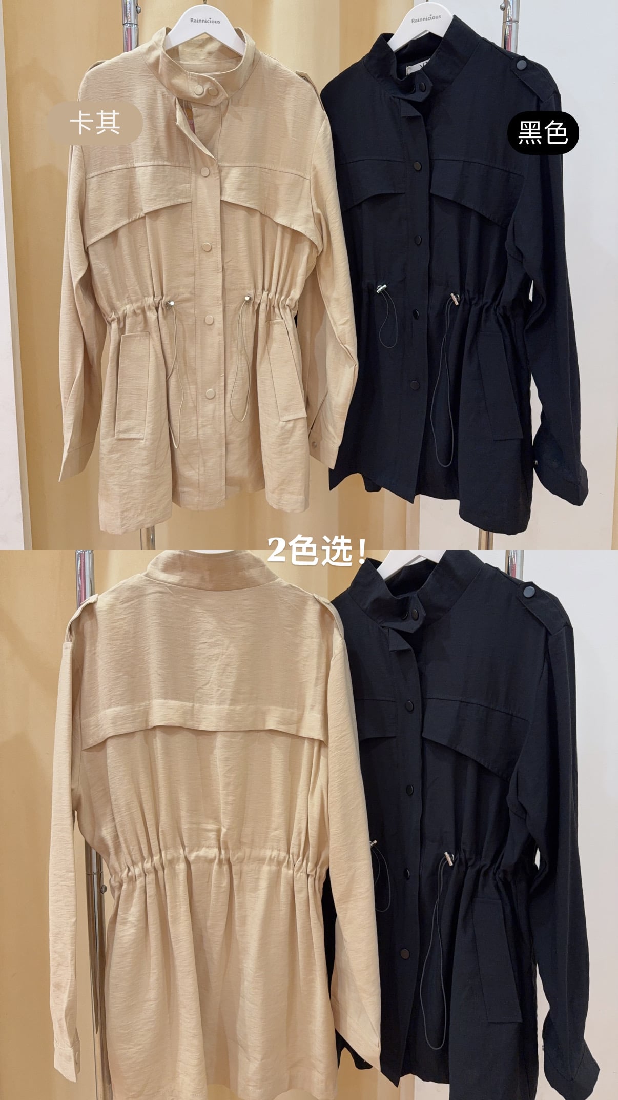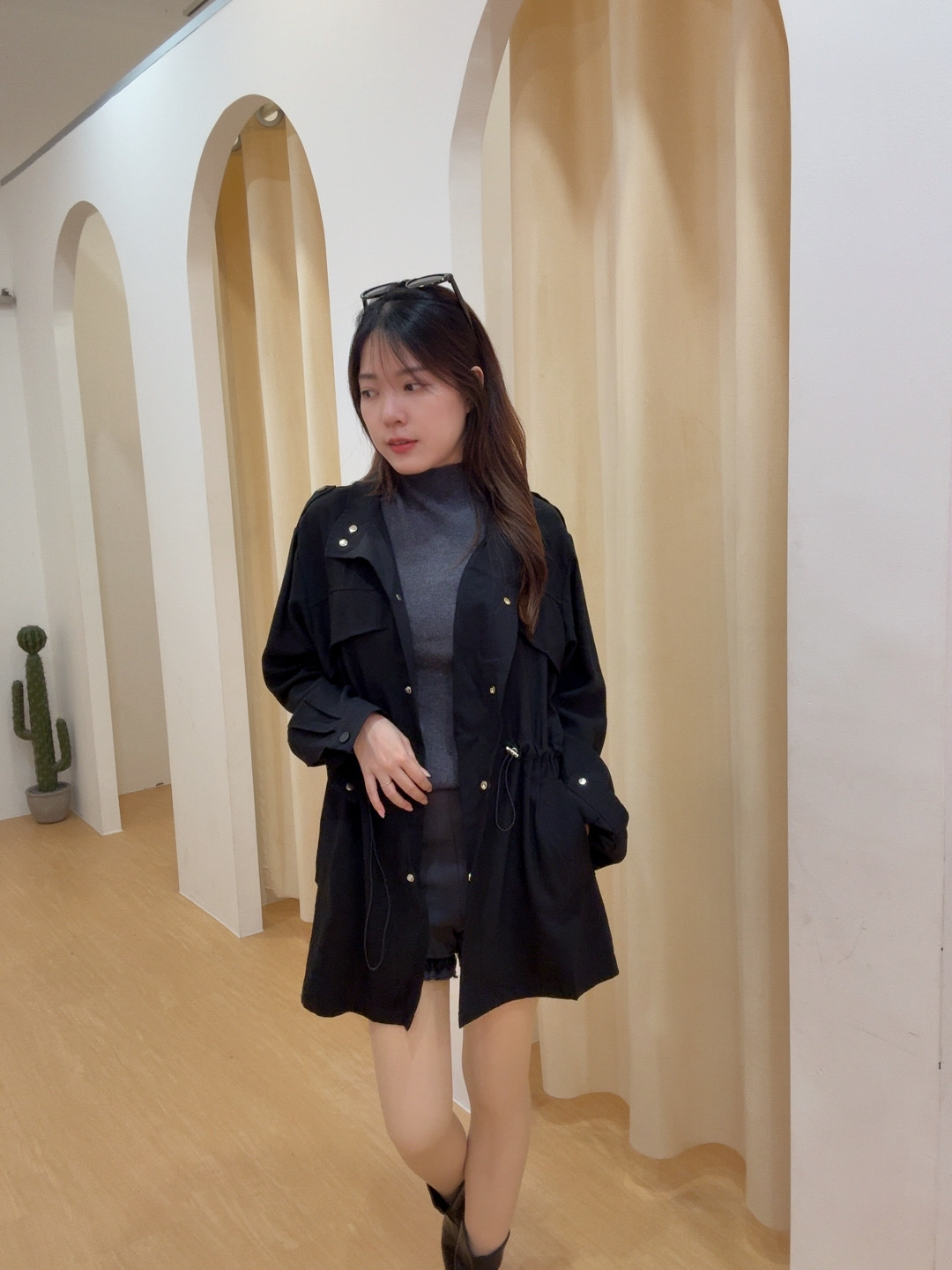Code: R2765 酷飒立领抽绳收腰风衣外套 Price: Rm79 Color :黑色Black / 卡其Khaki Size : Freesize Bust : 162cm Sleeve : 59cm Length :72cm Shoulder:43cm