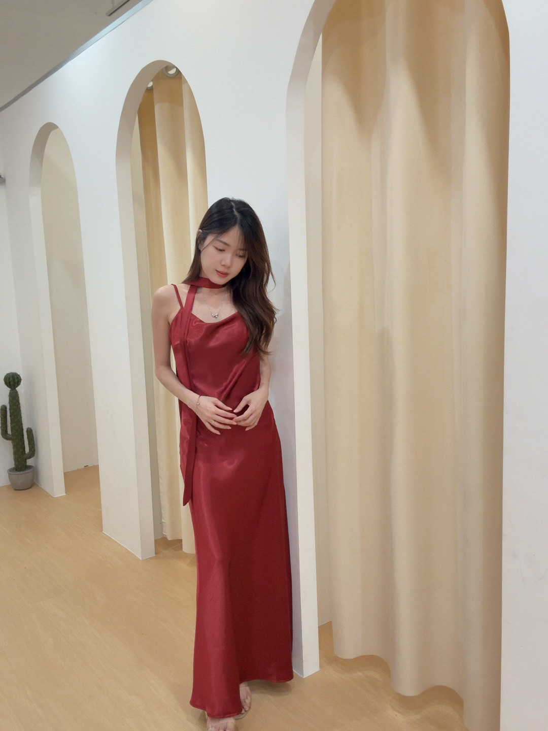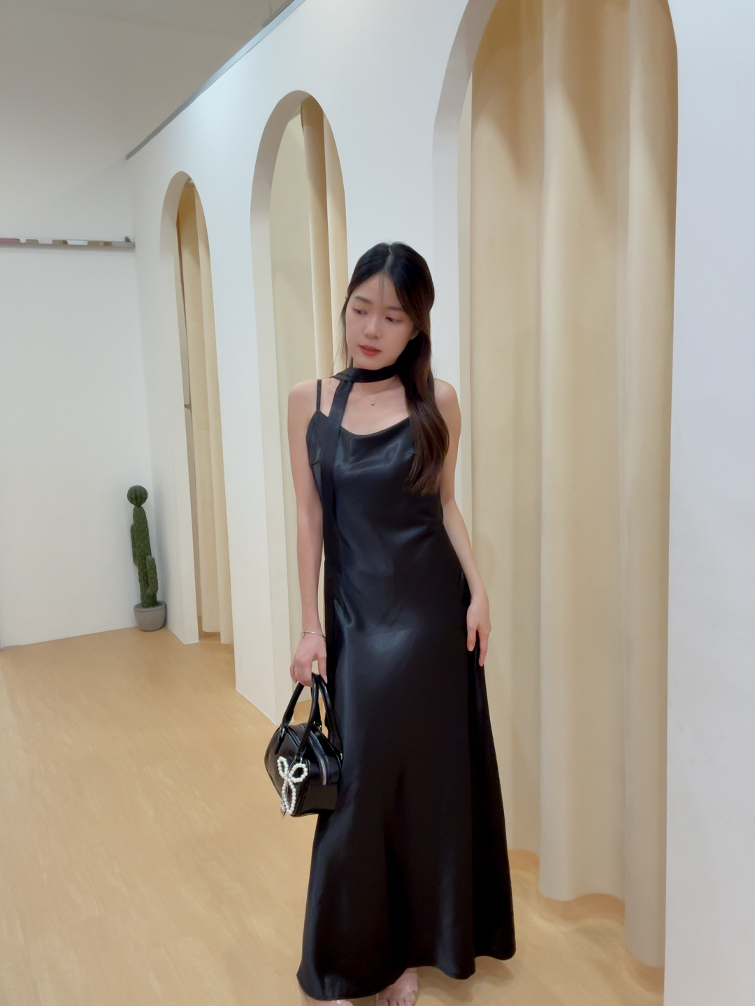 高级感气质缎面吊带垂感礼服长裙 R2870