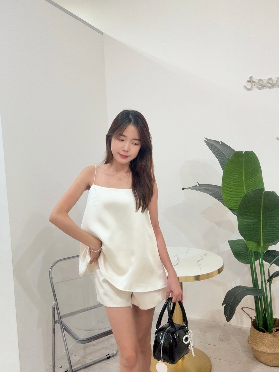 Code: R2732 高级感缎面细吊带上衣+裤子两件套装 Price: Rm89 Color : 奶油色cream / 黑色Black Size : S / M TOP S Bust: 76cm Length: 55cm PANT S Length : 33cm Waist : 64cm Hip : 94cm TOP M Bust: 80cm Length: 56cm PANT M Length : 35cm Waist : 70cm Hip : 100cm