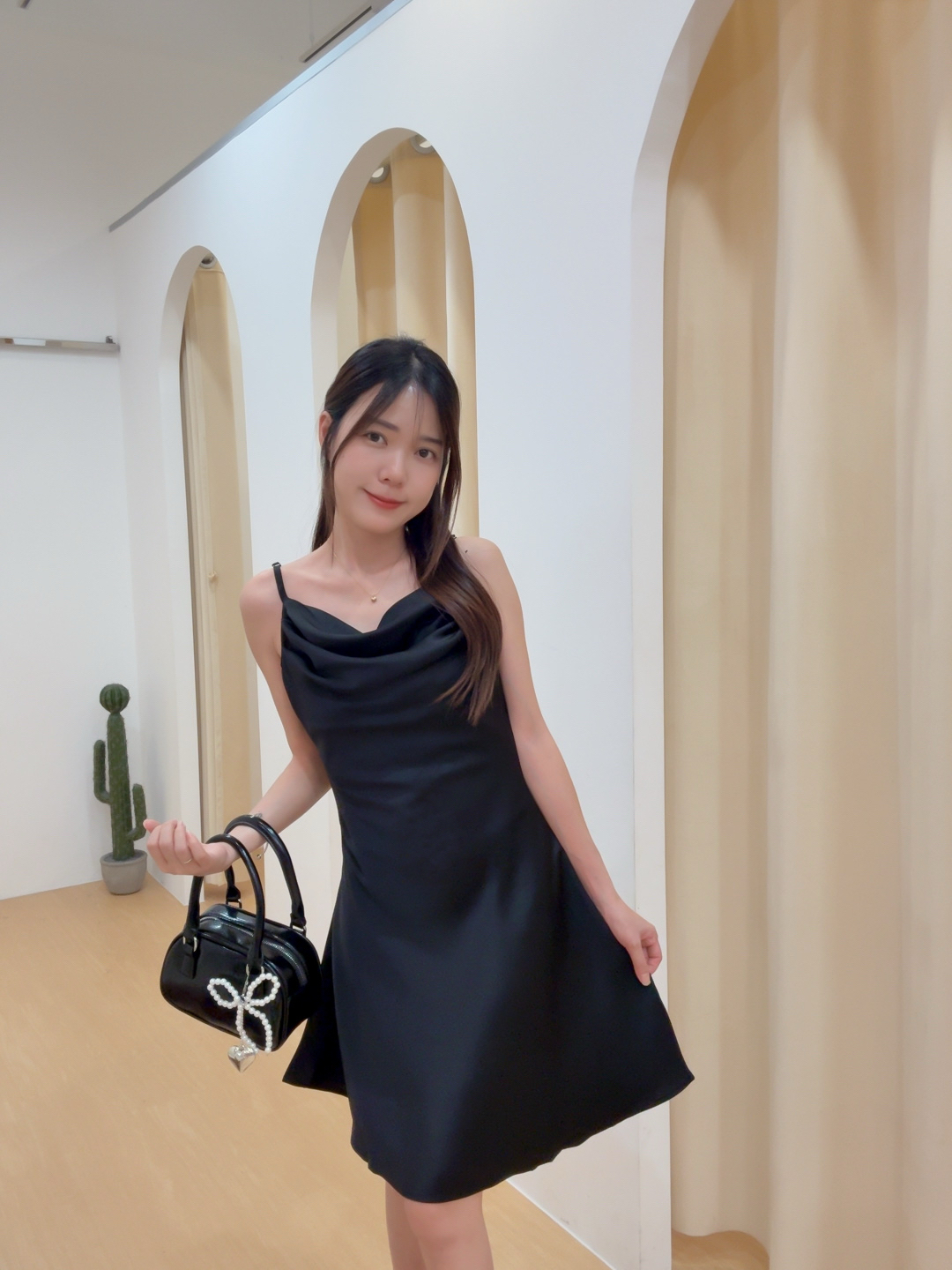 高级感缎面荡领修身A字小礼裙 R2869