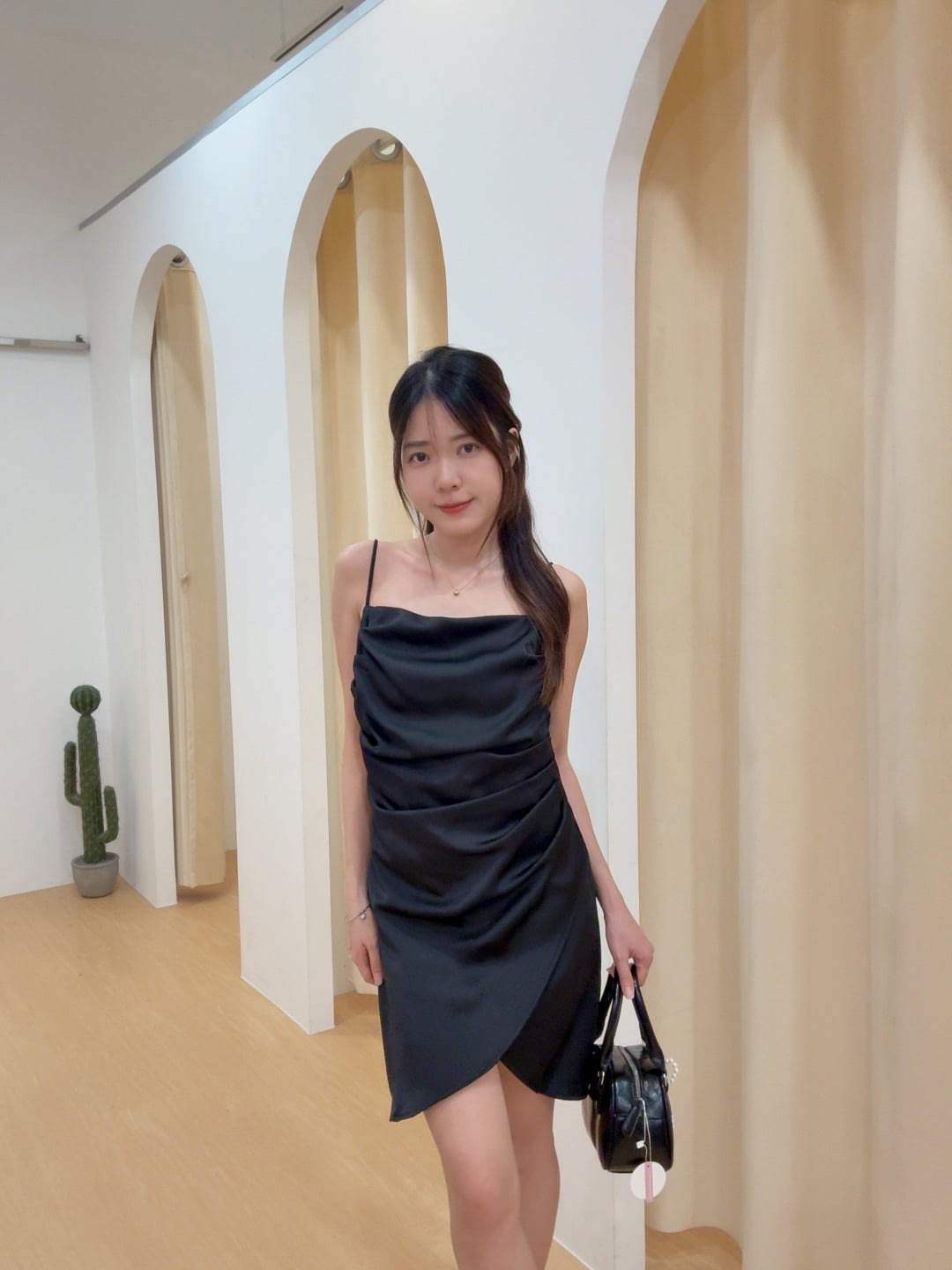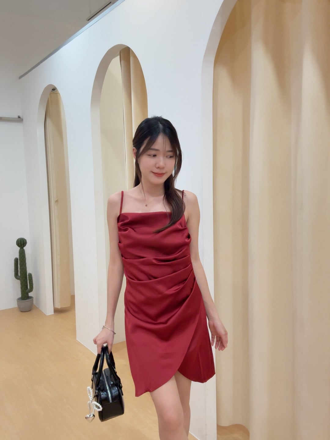 高级感缎面褶皱交叠小礼裙 R2868