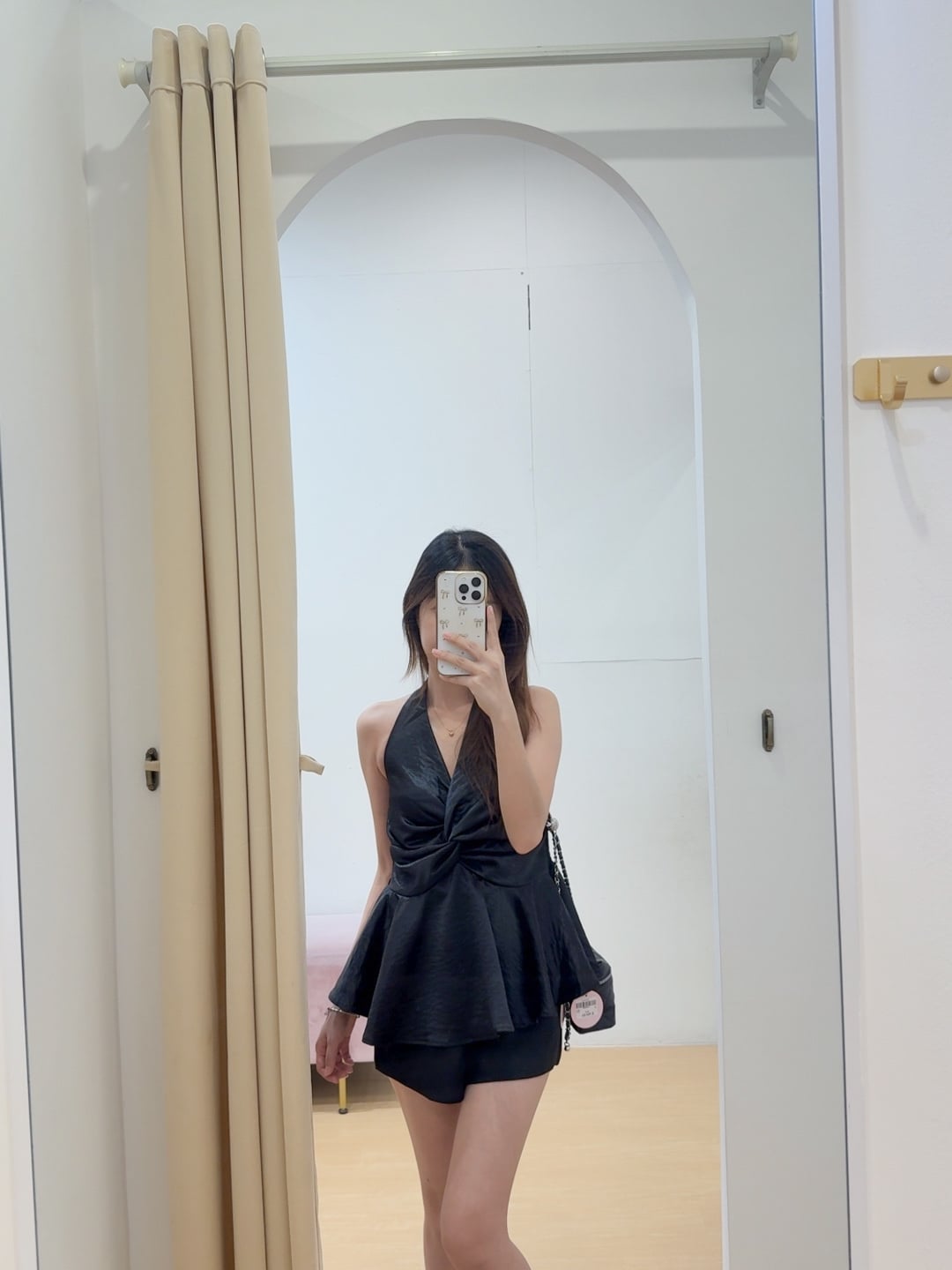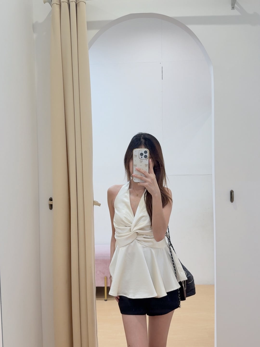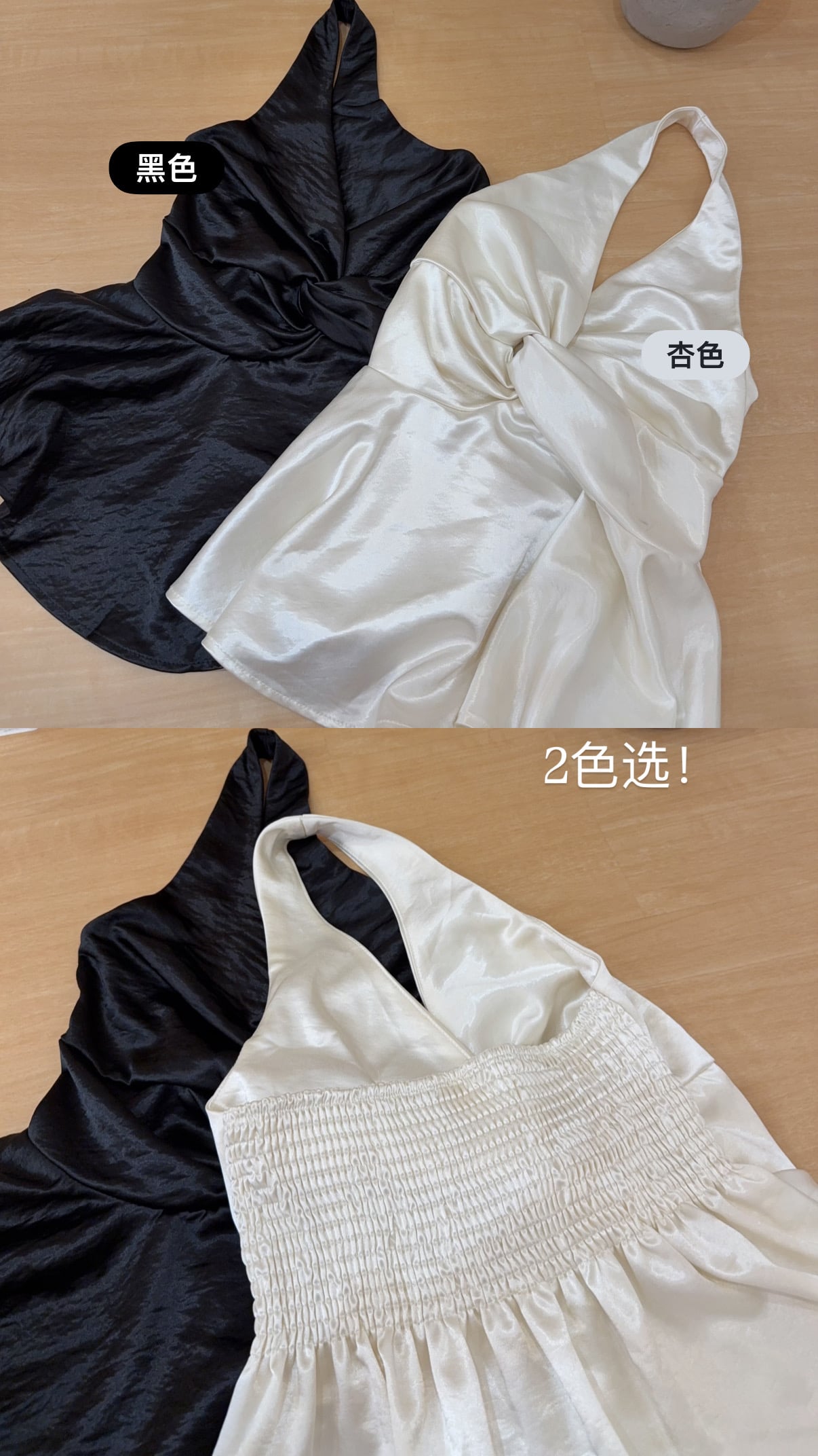 Code:R2772 高级感缎面V领挂脖背心上衣 Price:RM39 Color :黑色Black / 杏色beige Size : Freesize Bust : 70-100cm Length : 62cm