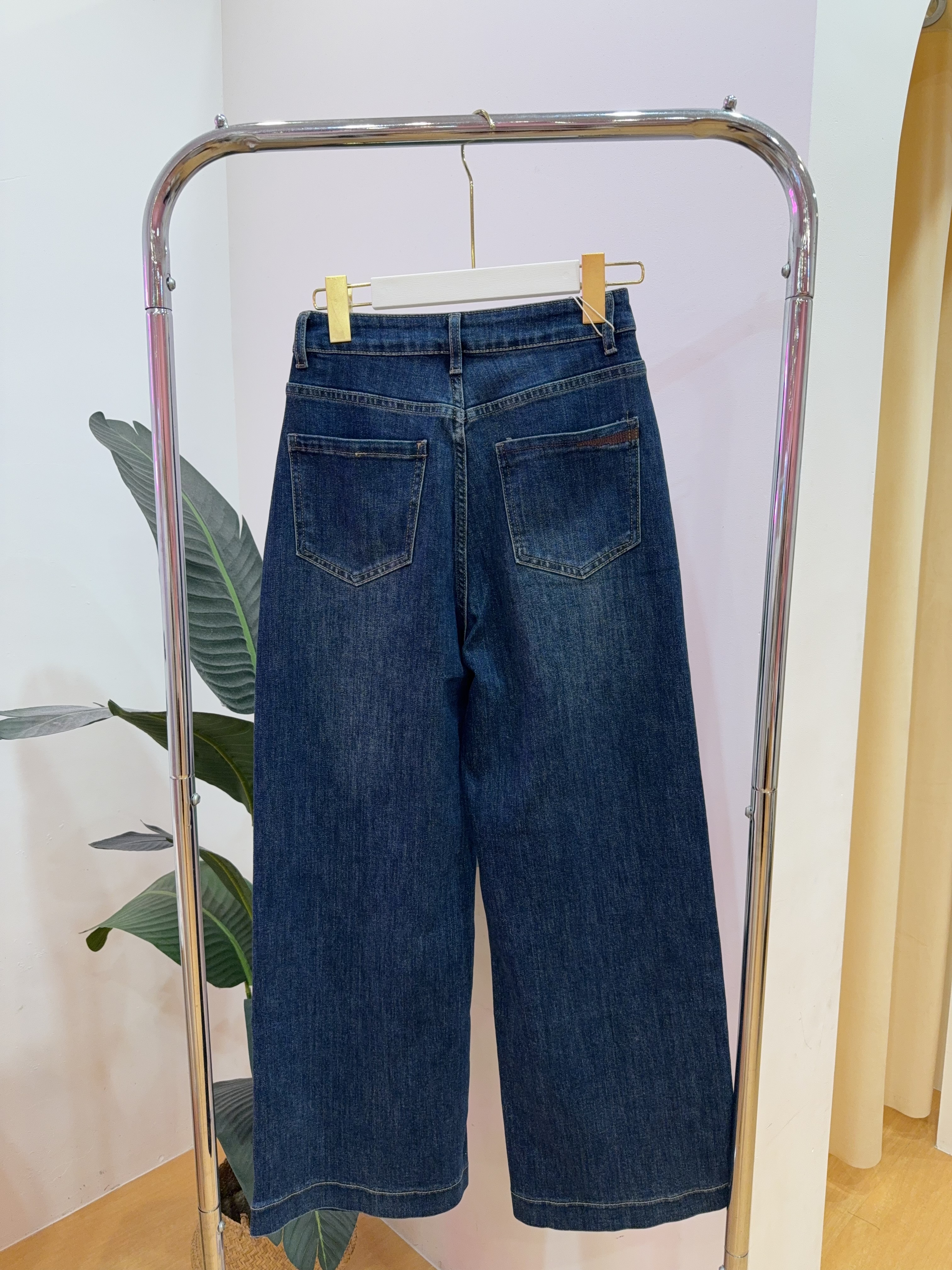 Code:R2862 高腰九分阔腿长裤 Price: Rm79 Color :深蓝牛仔DarkBlueJeans Size : S / M / L / XL S Waist : 60-62cm Length:95cm Hip : 98cm M Waist:62-64cm Length:95cm Hip:100cm L Waist:66-70cm Length:96cm Hip:104cm XL Waist:70-74cm Length:96cm Hip:120cm