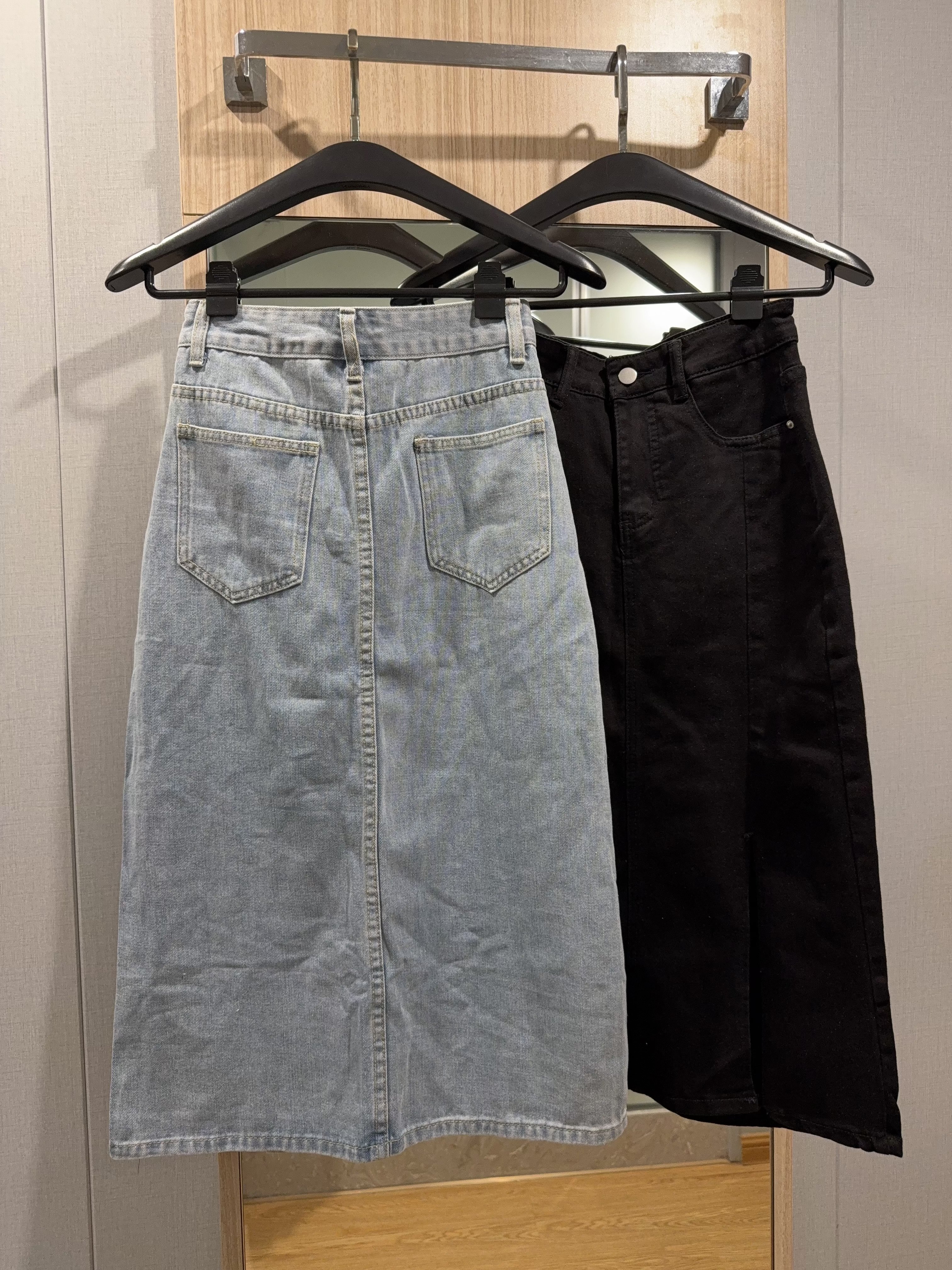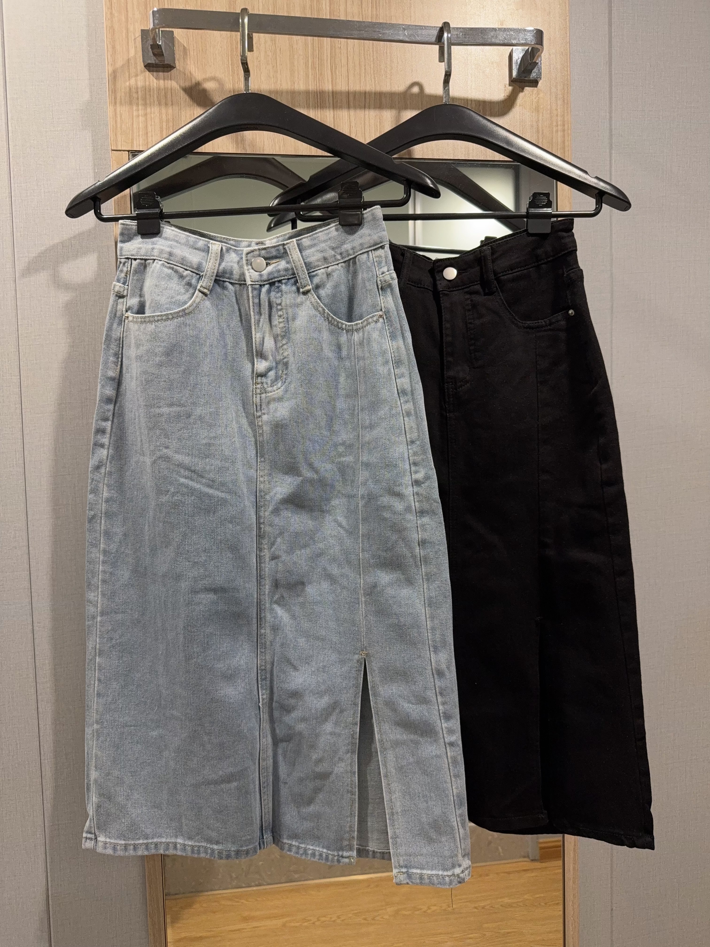 Code: R2801 高腰弹力牛仔侧开叉半身中长裙 Price: Rm65 Color :浅蓝牛仔LightJean/黑色Black Size : S/M/L/XL S Waist :62-70cm Length :73cm Hip :88-100cm M Waist :66-74cm Length :74cm Hip :90-102cm L Waist :69-77cm Length :75cm Hip :92-104cm XL Waist :73-81cm Length :75cm Hip :96-108cm