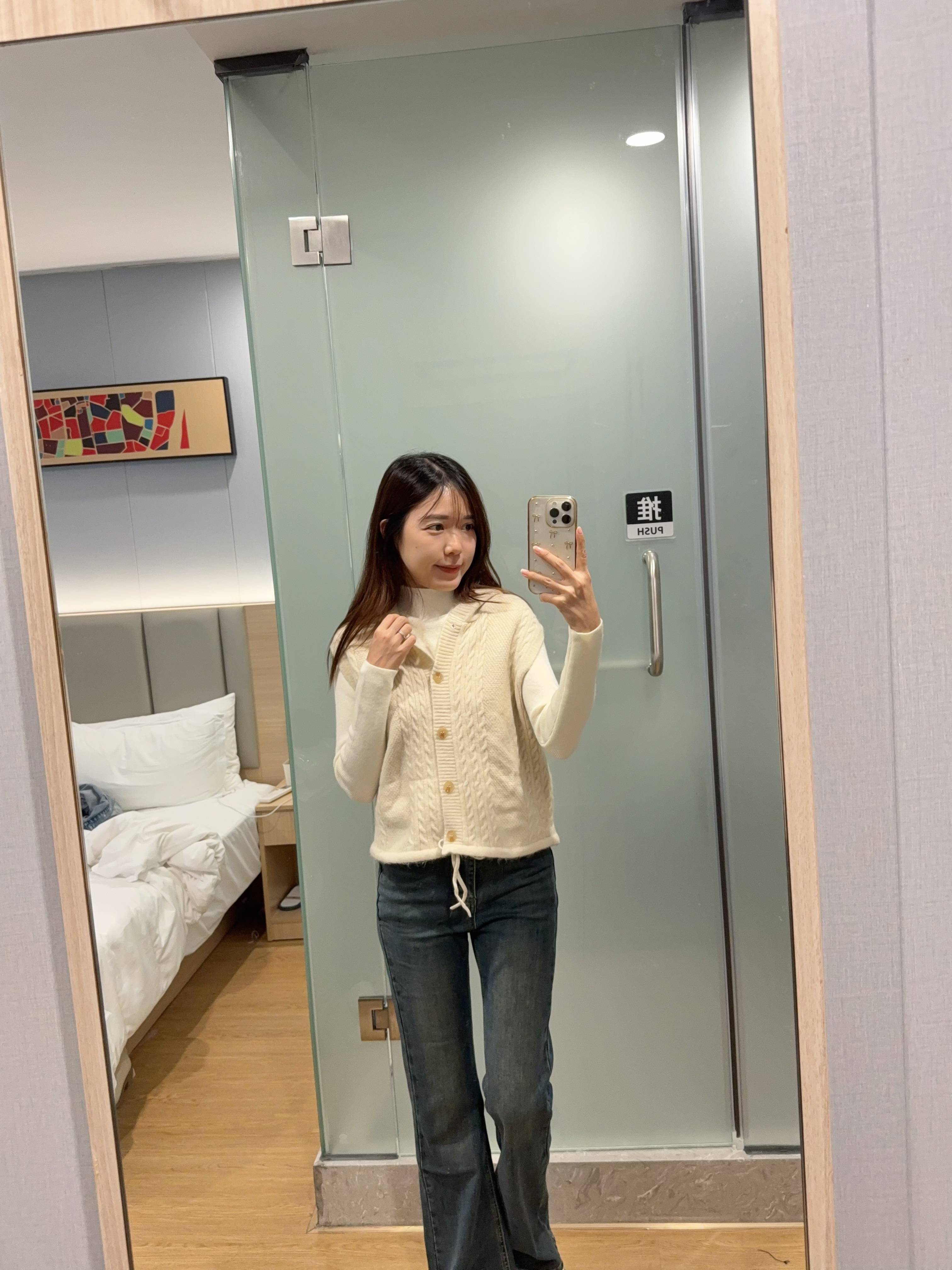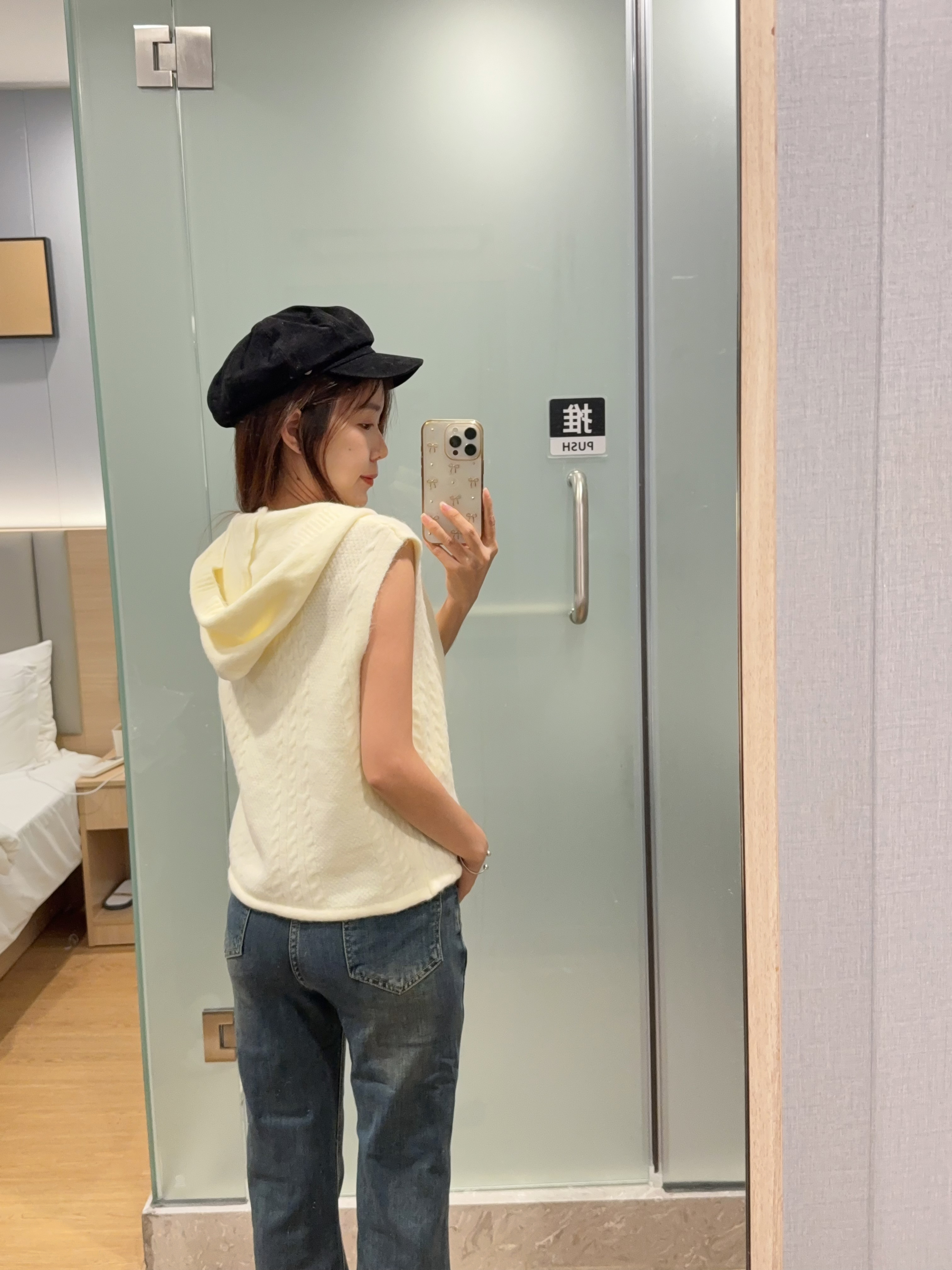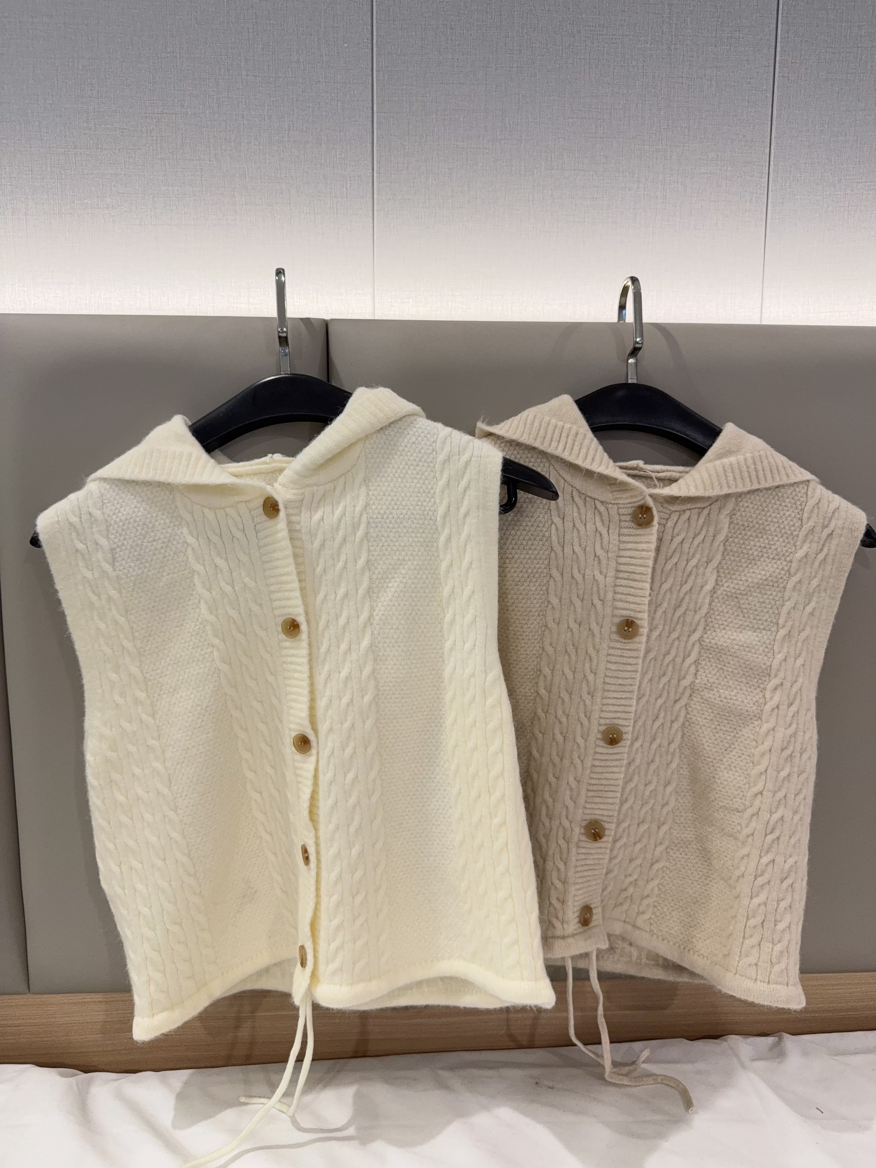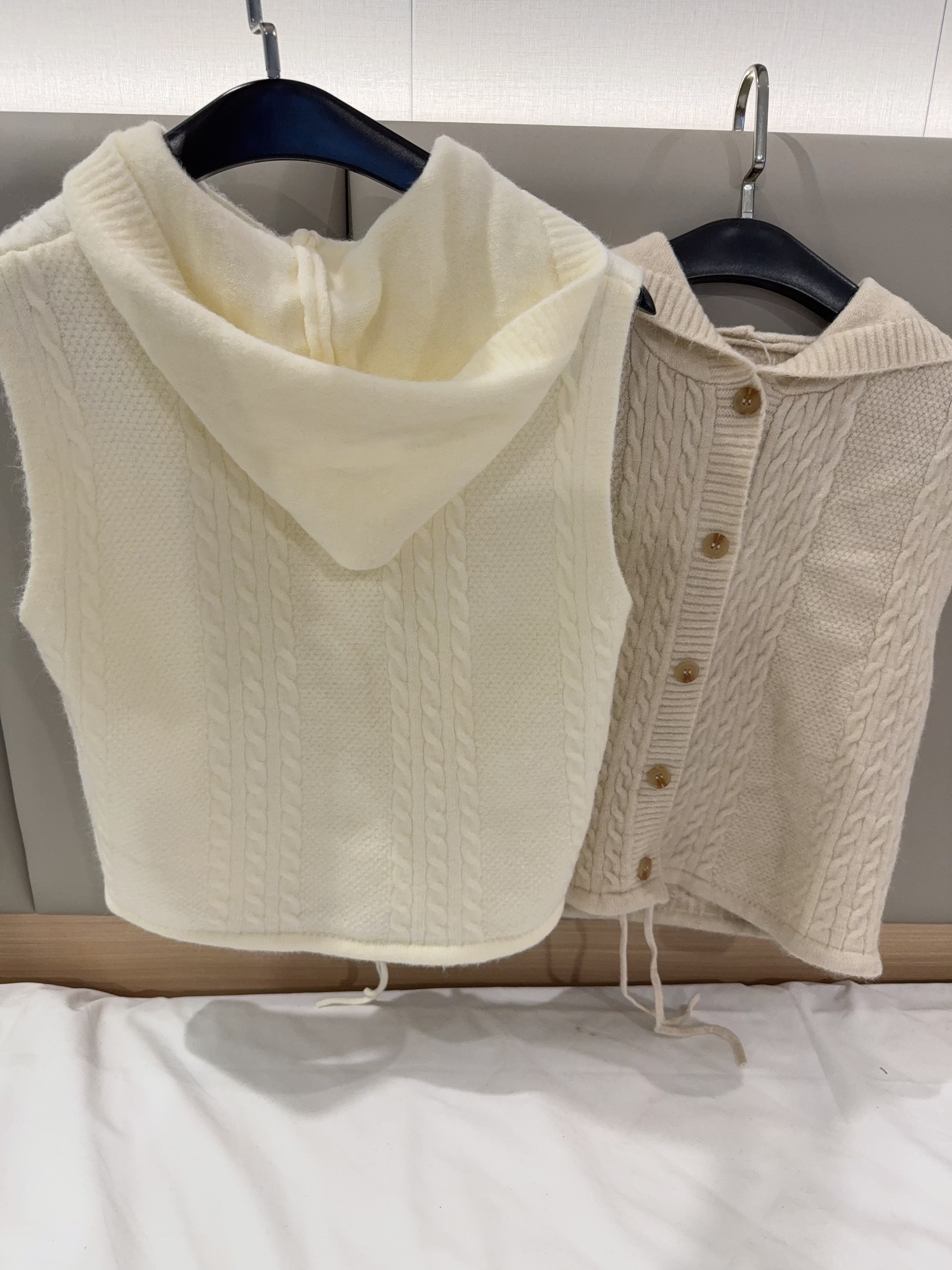 Code: R2828 麻花连帽针织马甲上衣 Price: Rm42 Color :奶白色CreamWhite/燕麦色Oatmeal Size : Freesize Bust:90cm Length:51cm