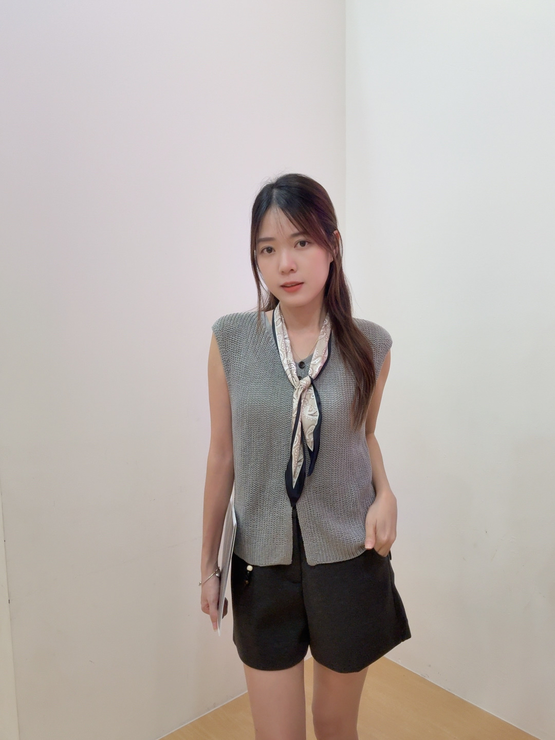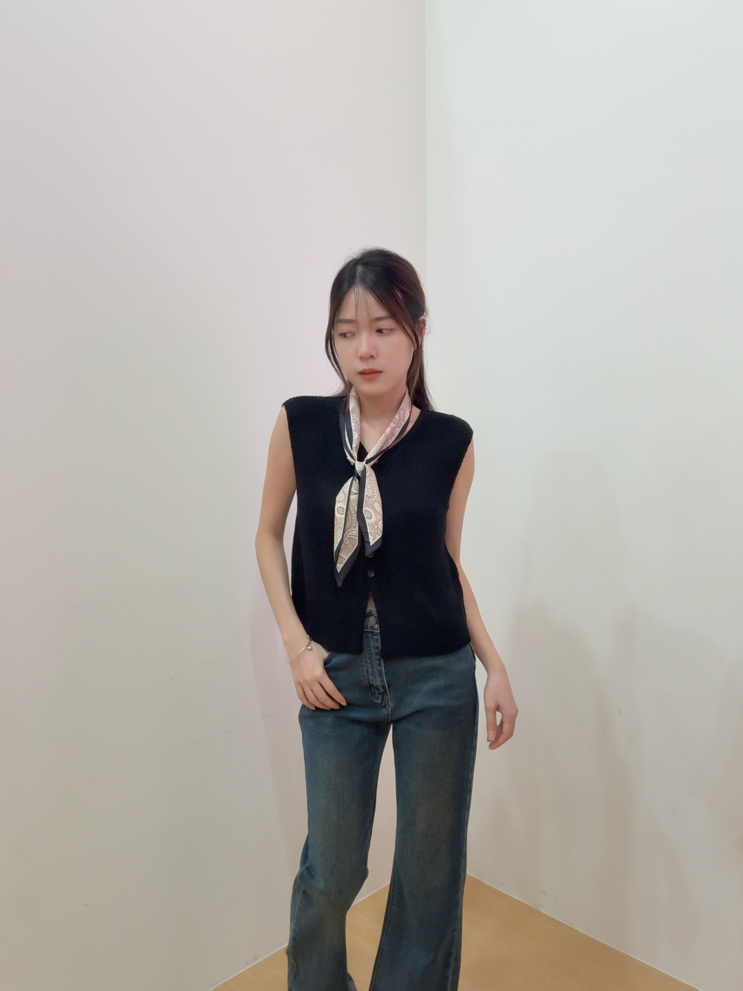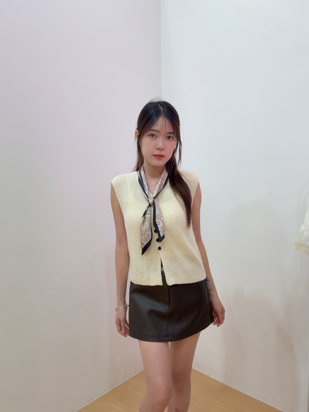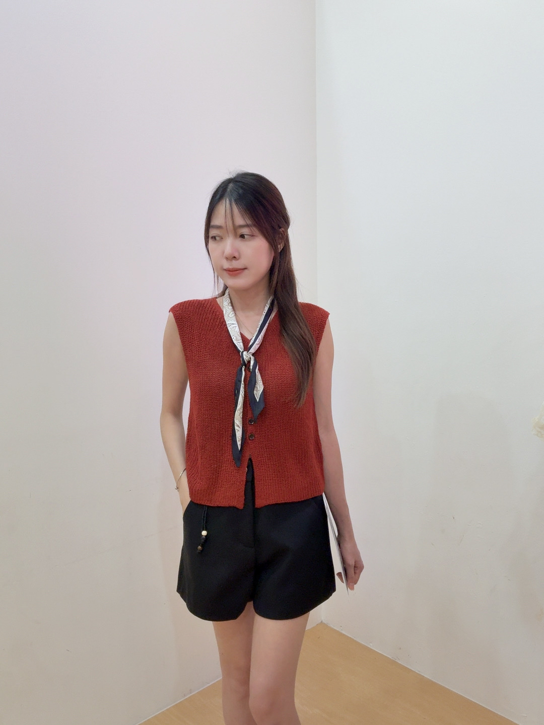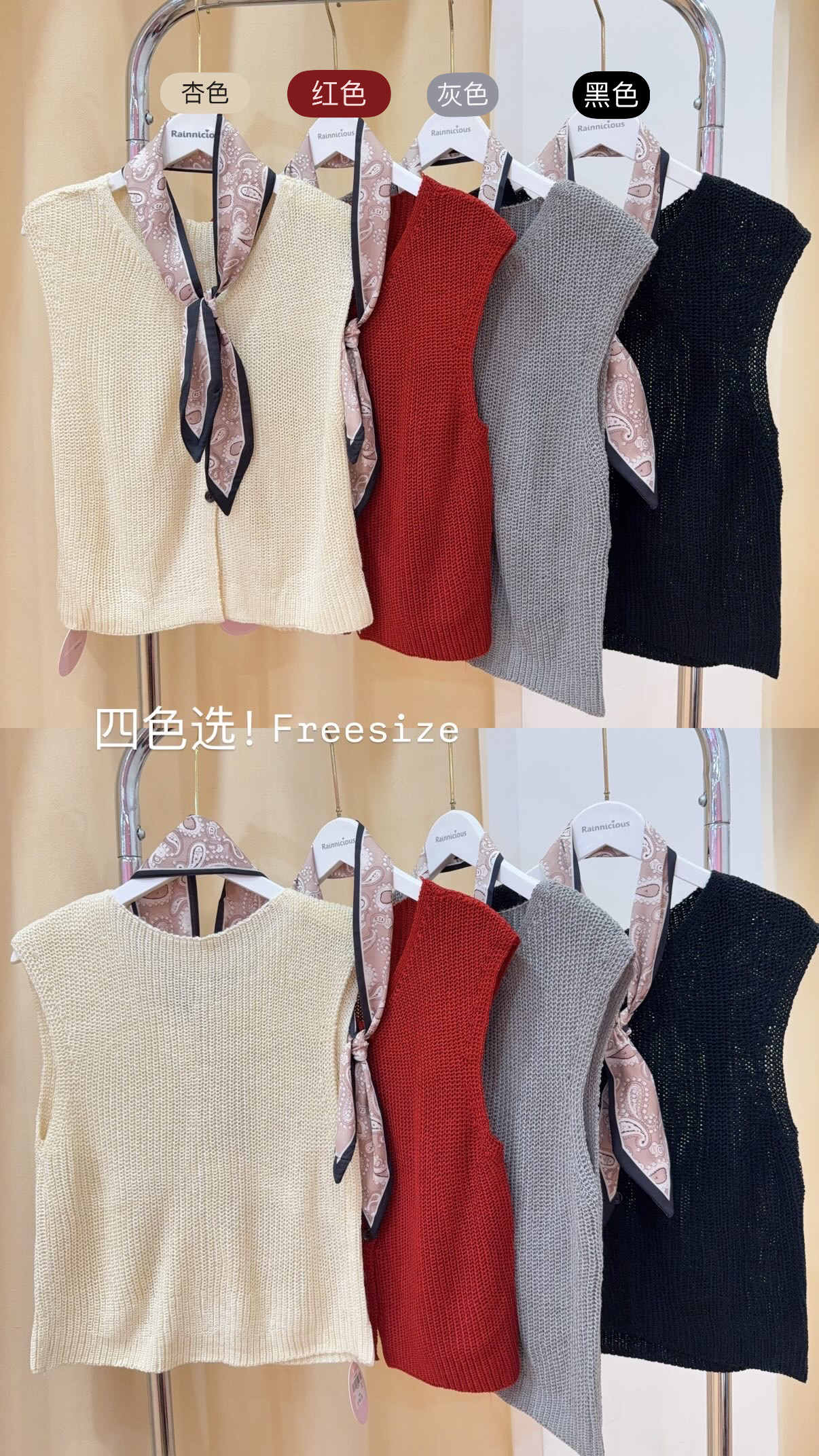 Code: R2723针织丝巾背心上衣 Price: Rm39 Color : 杏色Beige / 黑色Black / 红色Red / 灰色Grey Size : Freesize Bust : 72cm Length : 47cm